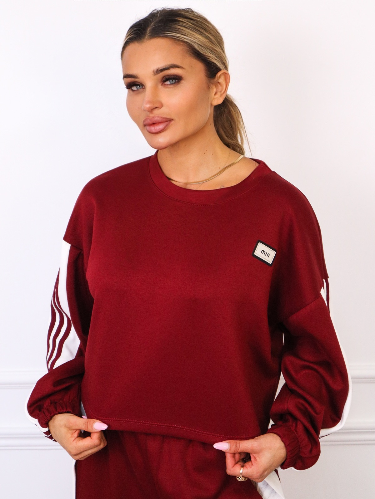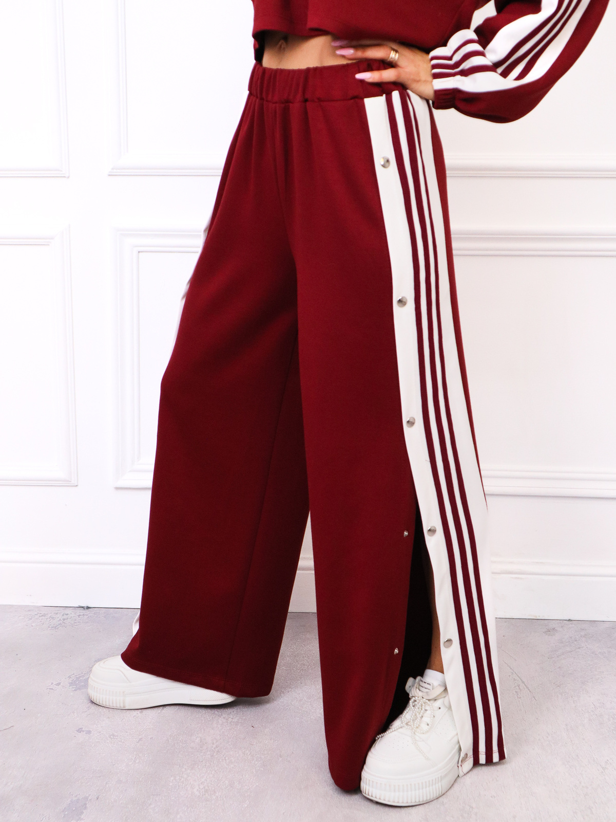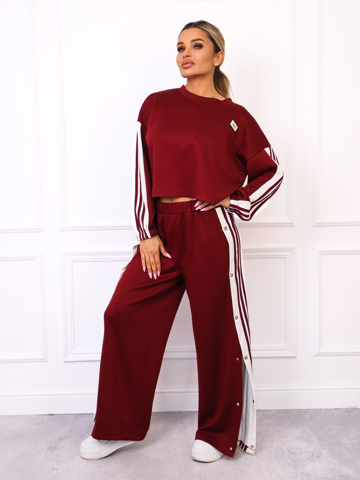 KOMPLET MASEŁKO BLUZA Z NASZYWKĄ+ SPODNIE ZAPINANE PO BOKACH- BORDOWY