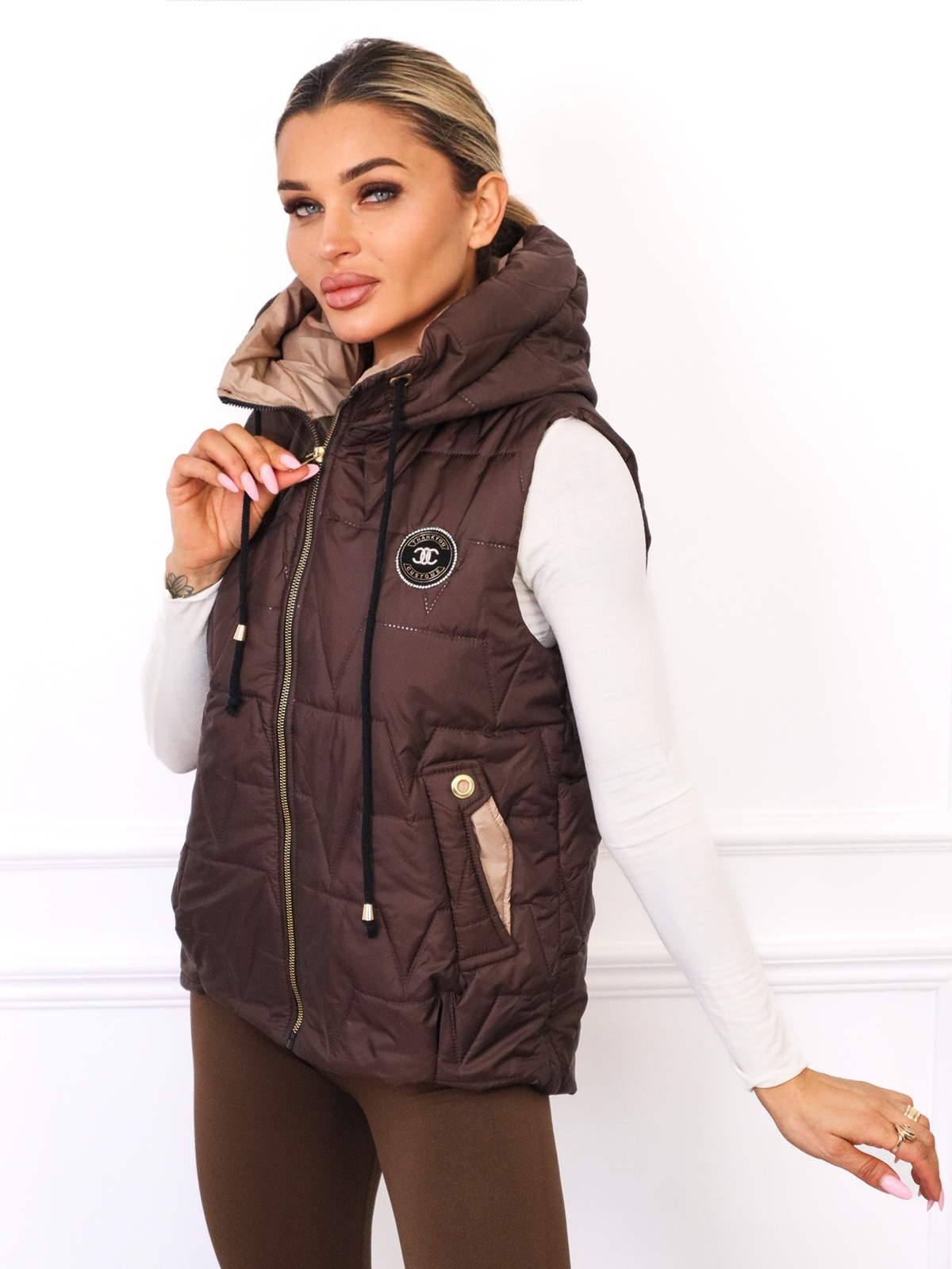 KAMIZELKA Z KAPTUREM I NASZYWKĄ- BRĄZOWA