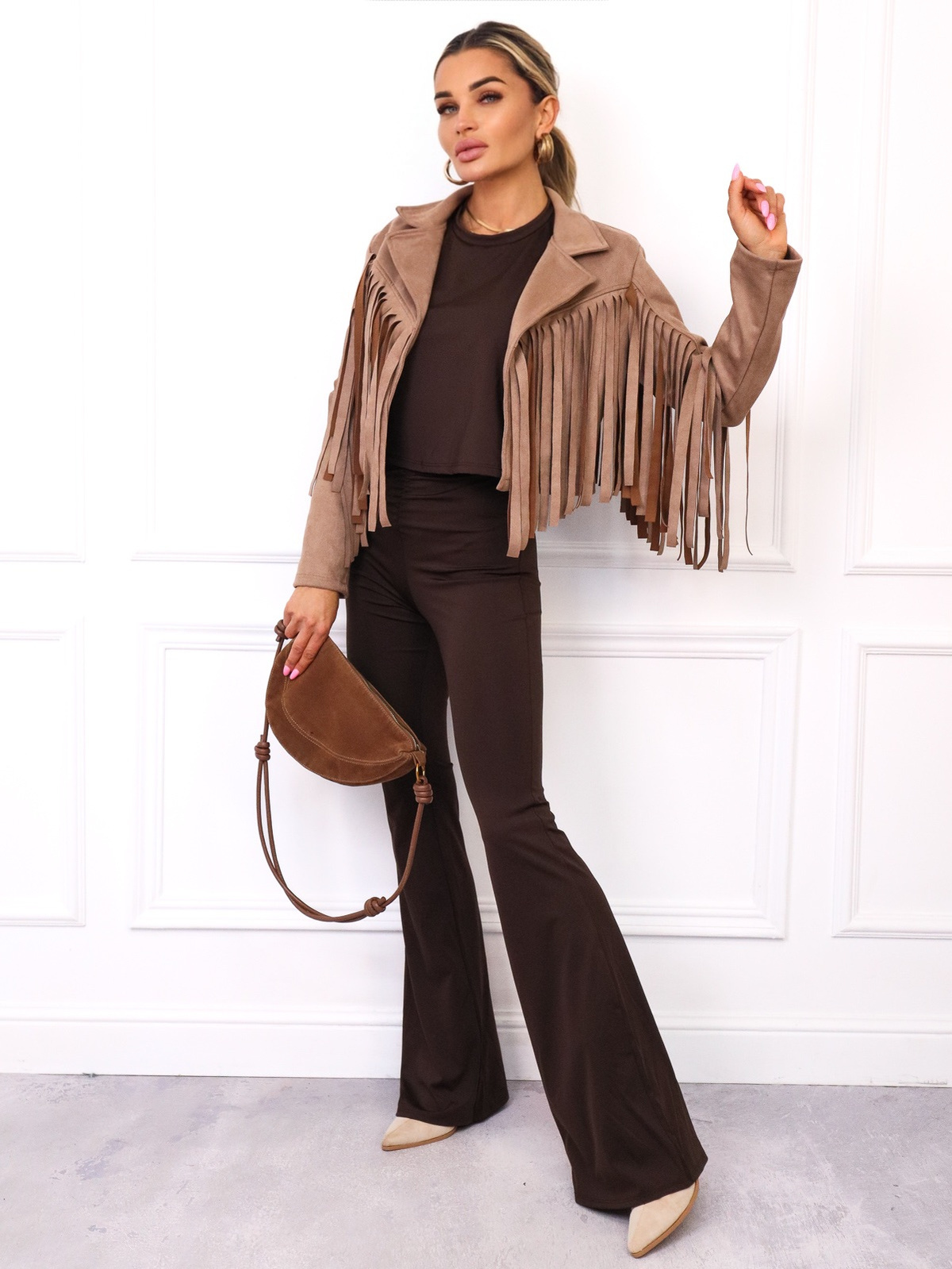KURTKA Z IMITACJI ZAMSZU Z FRĘDZLAMI- JASNOBRĄZOWA
