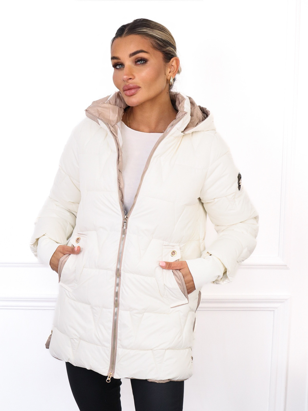 KURTKA PIKOWANA Z ZAMKAMI PO BOKACH- BIAŁA