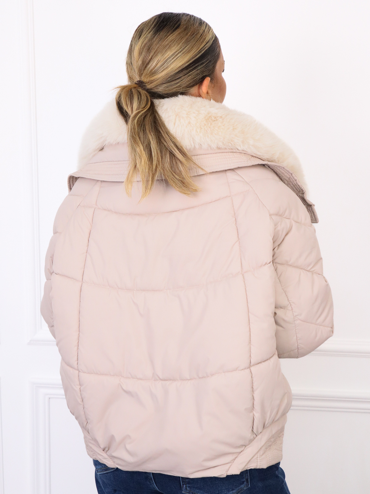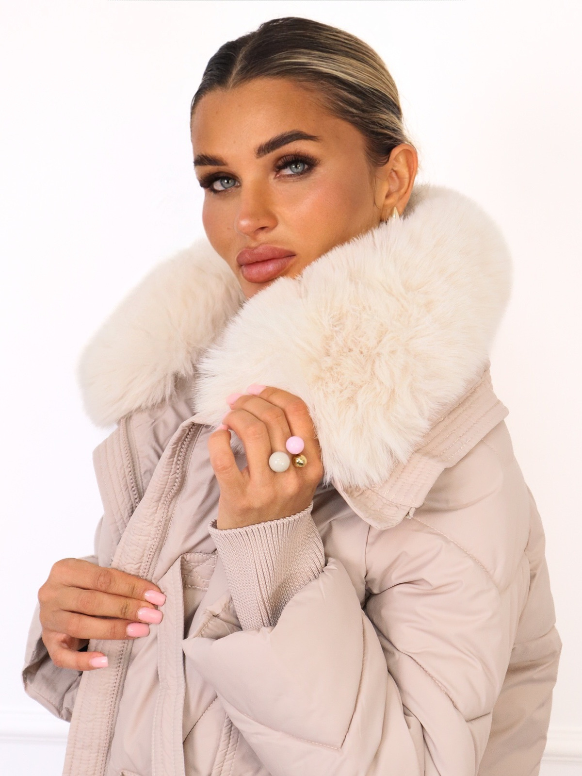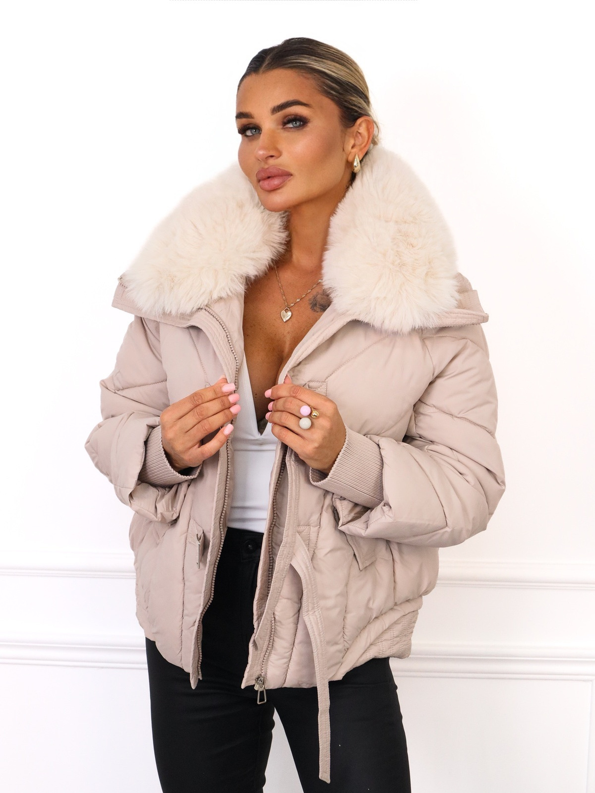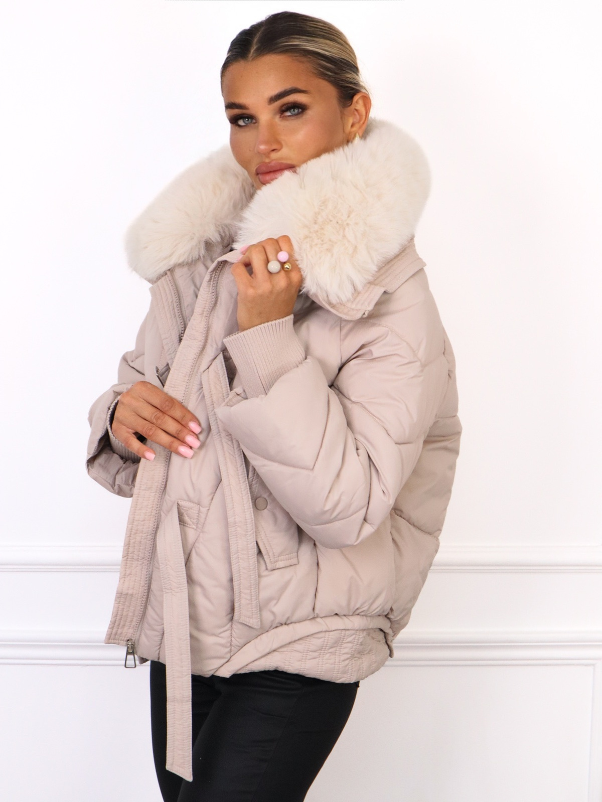 KURTKA Z FUTERKIEM NA KOŁNIERZU- BEŻOWA
