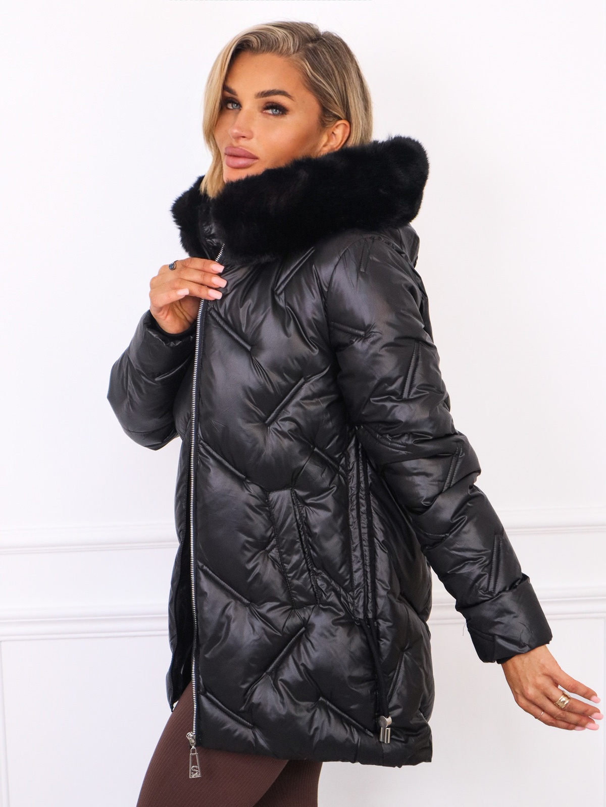 KURTKA ASYMETRYCZNA PIKOWANA Z FUTERKIEM- CZARNA