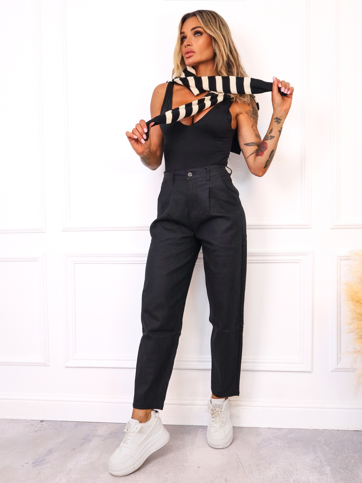 SPODNIE WOSKOWANE MOM FIT - CZARNE