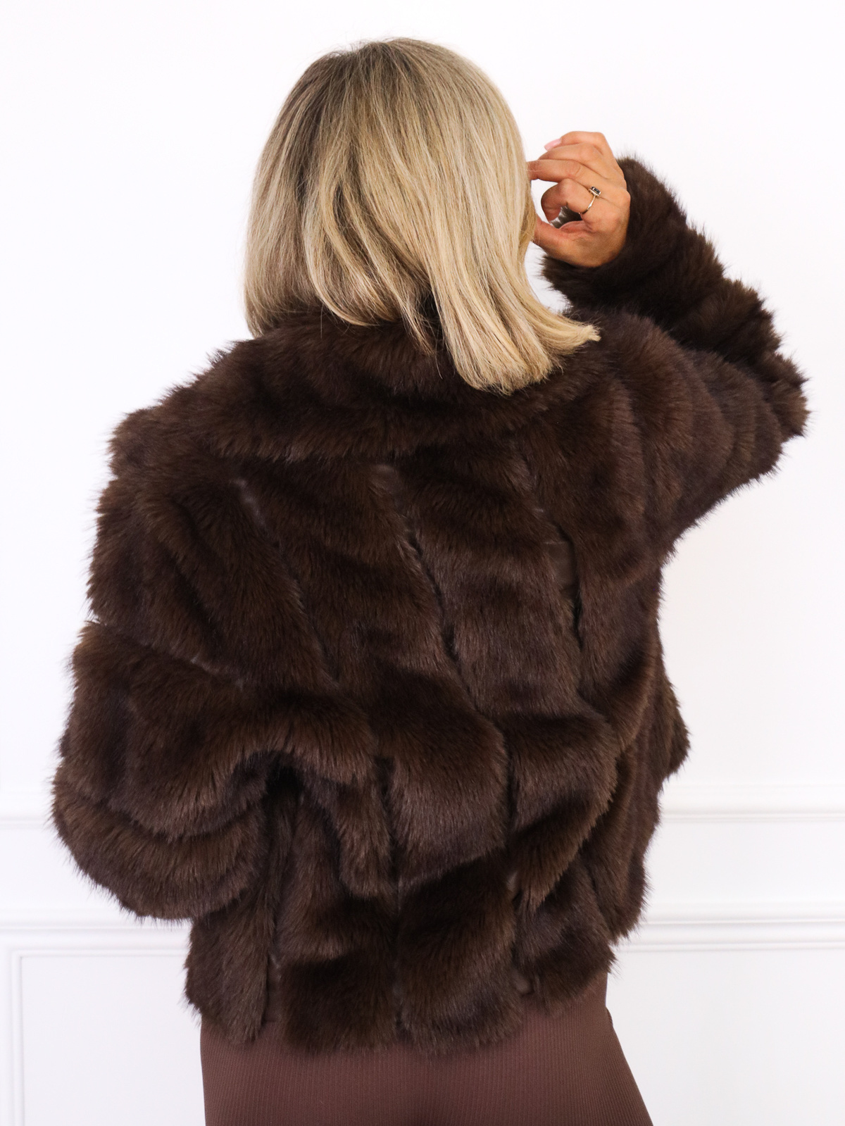 KRÓTKIE FUTERKO Z KOŁNIERZEM- BRĄZOWE