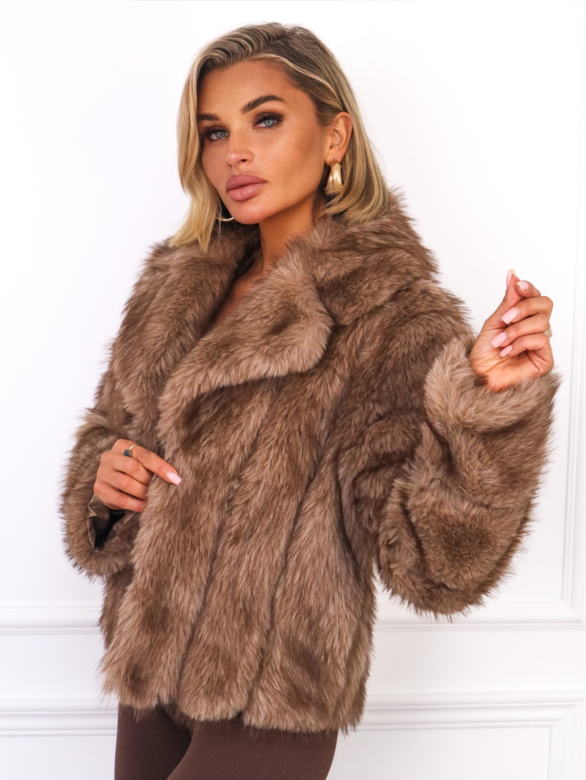 KRÓTKIE FUTERKO Z KOŁNIERZEM- CIEMNY BEŻ