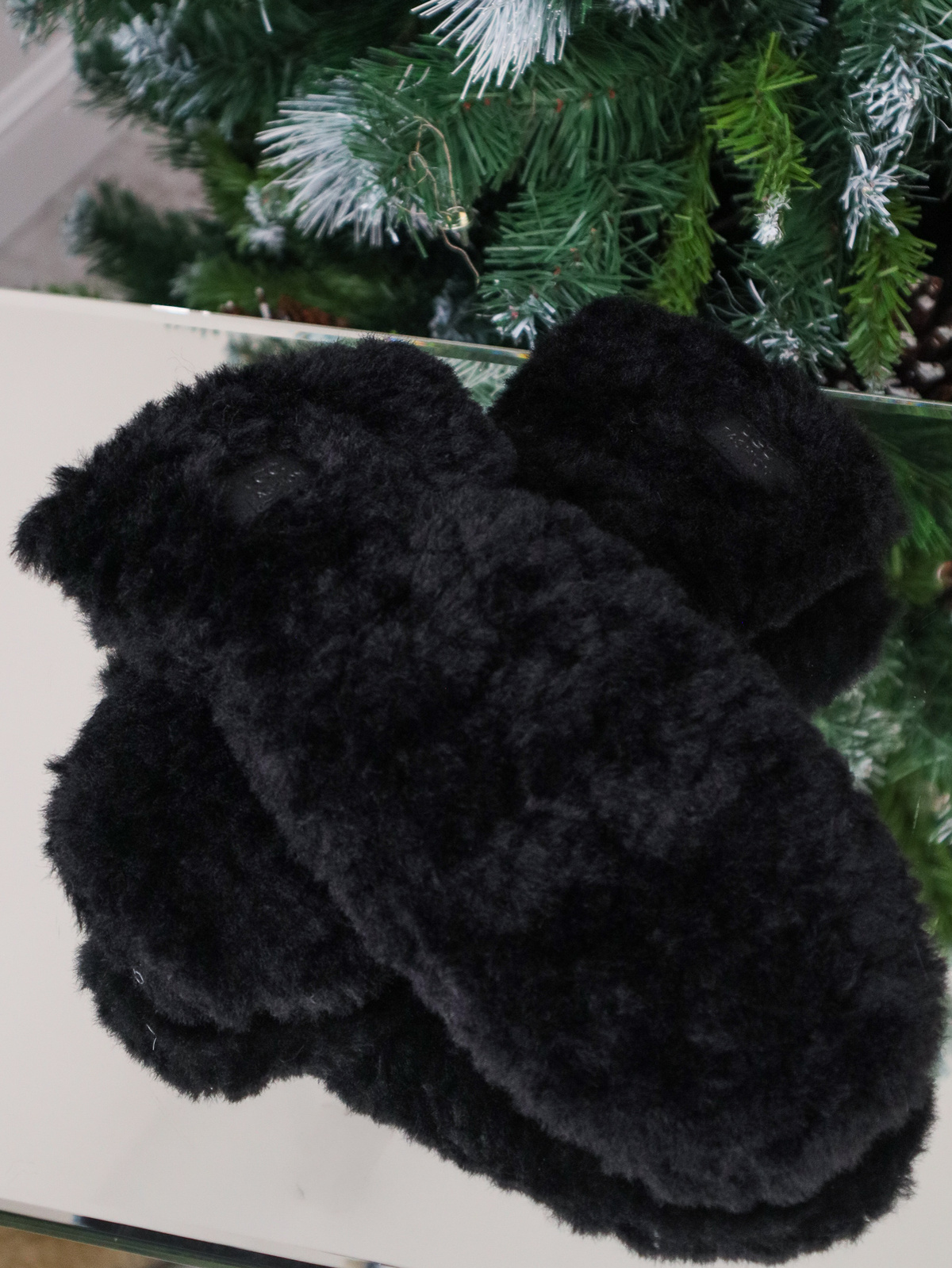 RĘKAWICZKI FUTRZANE NA JEDEN PALEC Z LOGIEM- CZARNE