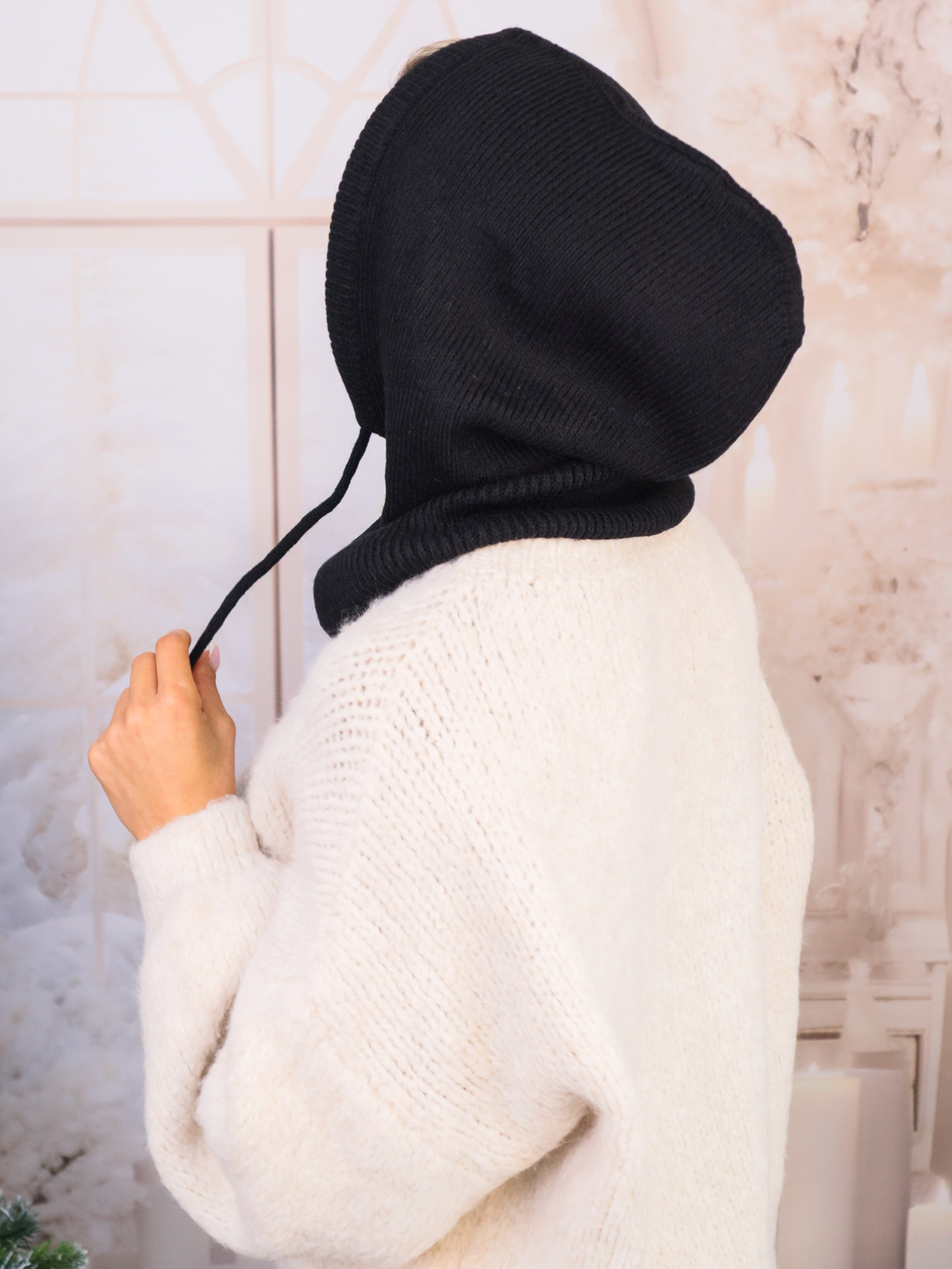 KOMINIARKA DZIANINOWA Z KAPTUREM-CZARNA