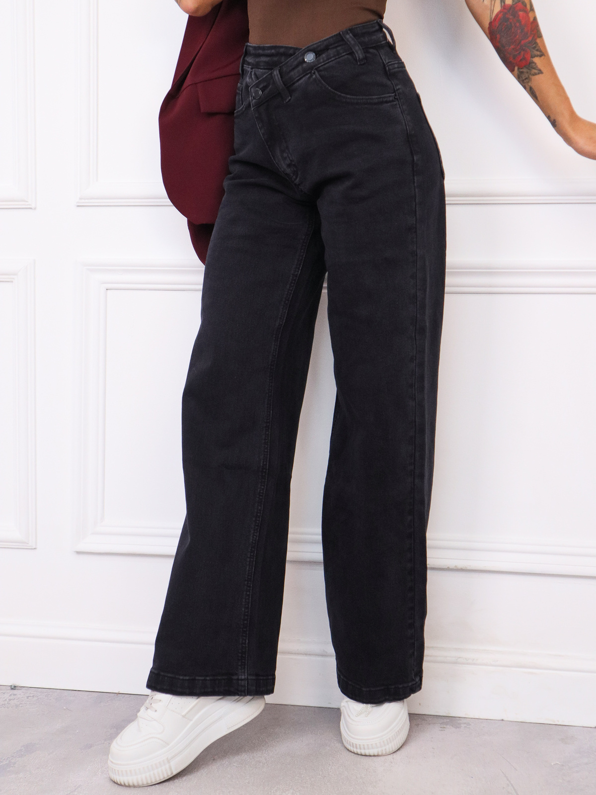 SPODNIE JEANSOWE Z ASYMETRYCZNYM ZAPIĘCIEM I SZEROKIMI NOGAWKAMI- CZARNE