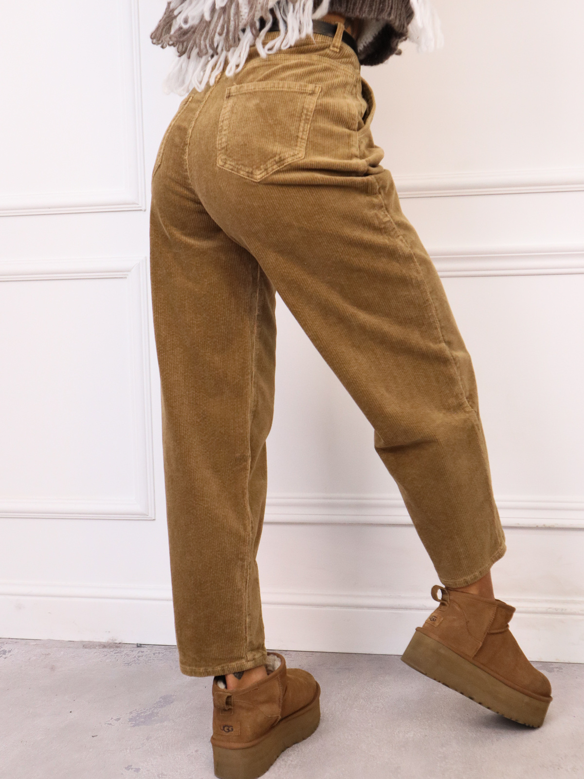 SPODNIE SZTRUKSOWE MOM FIT Z PRZESZYCIAMI NA DOLE NOGAWEK+ PASEK