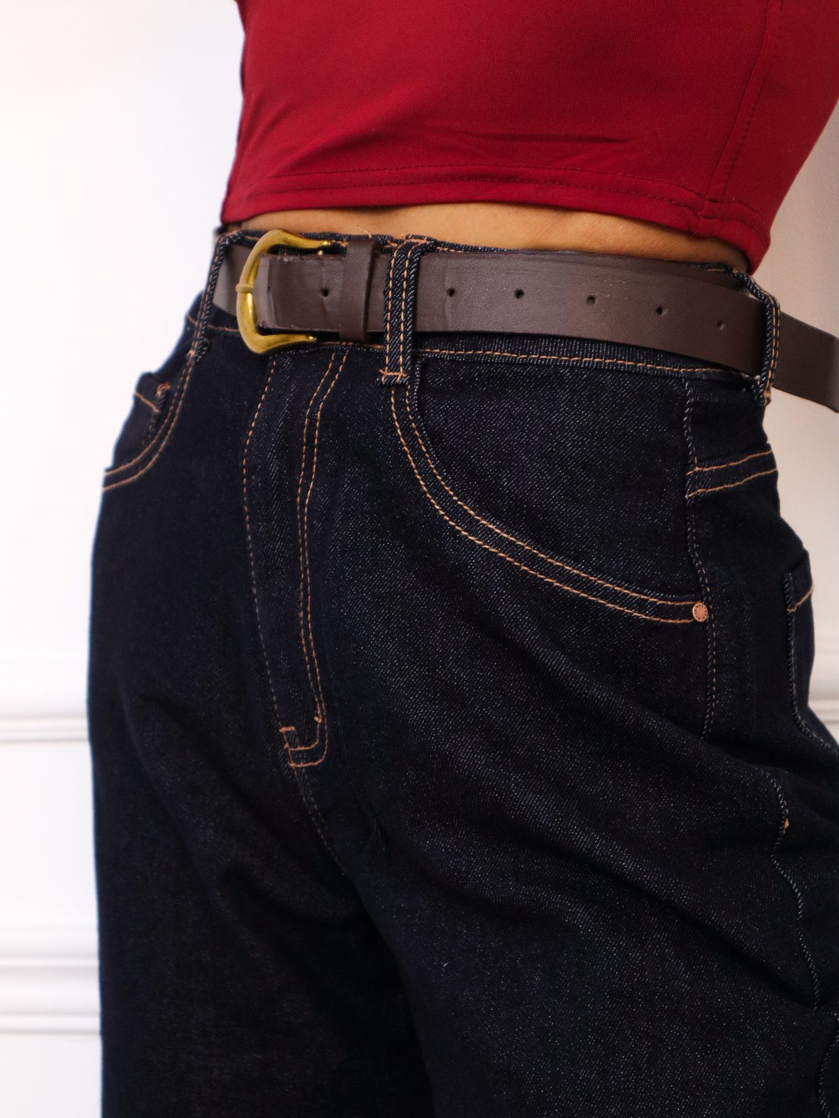 SPODNIE JENASOWE Z PROSTYMI NOGAWKAMI I WYSOKIM STANEM- CIEMNY GRANAT