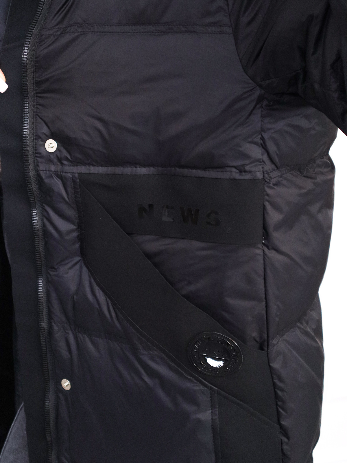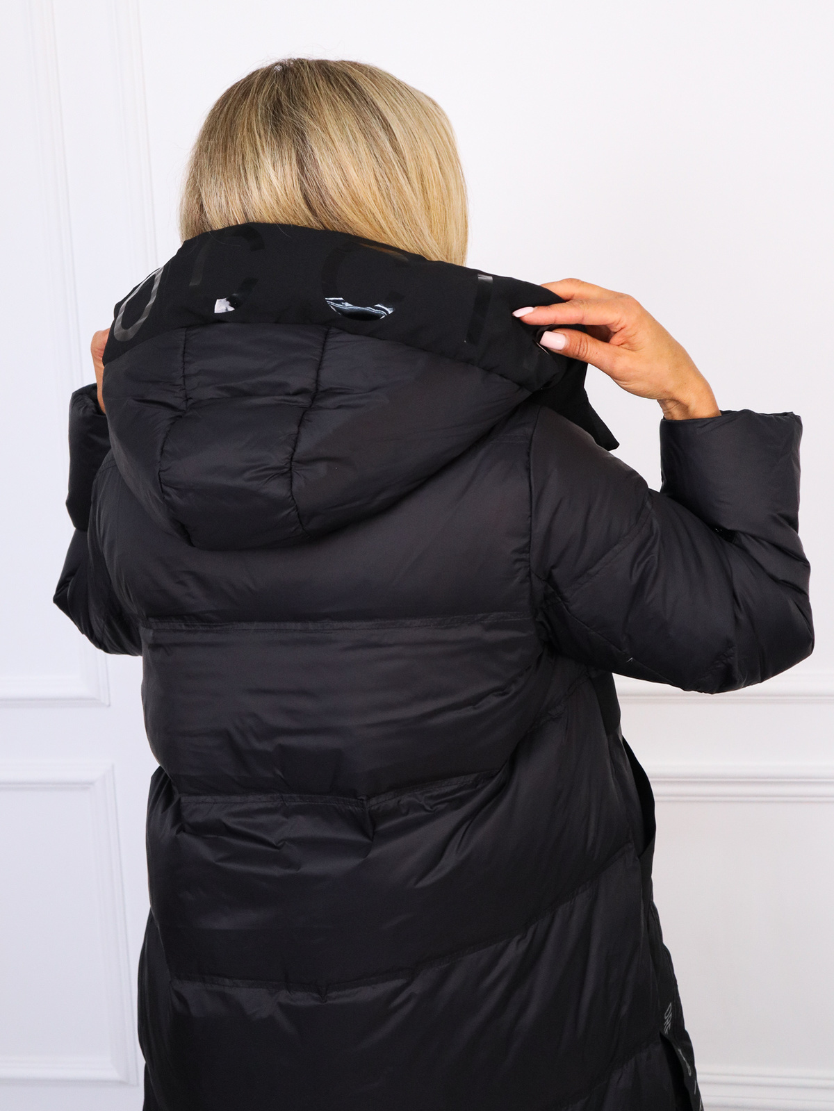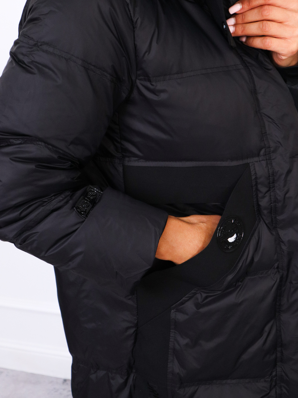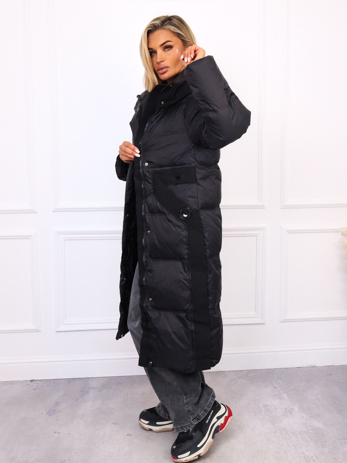 DŁUGA KURTKA PŁASZCZ Z LAMPASAMI WYPEŁNIONA KACZYM PUCHEM- CZARNA