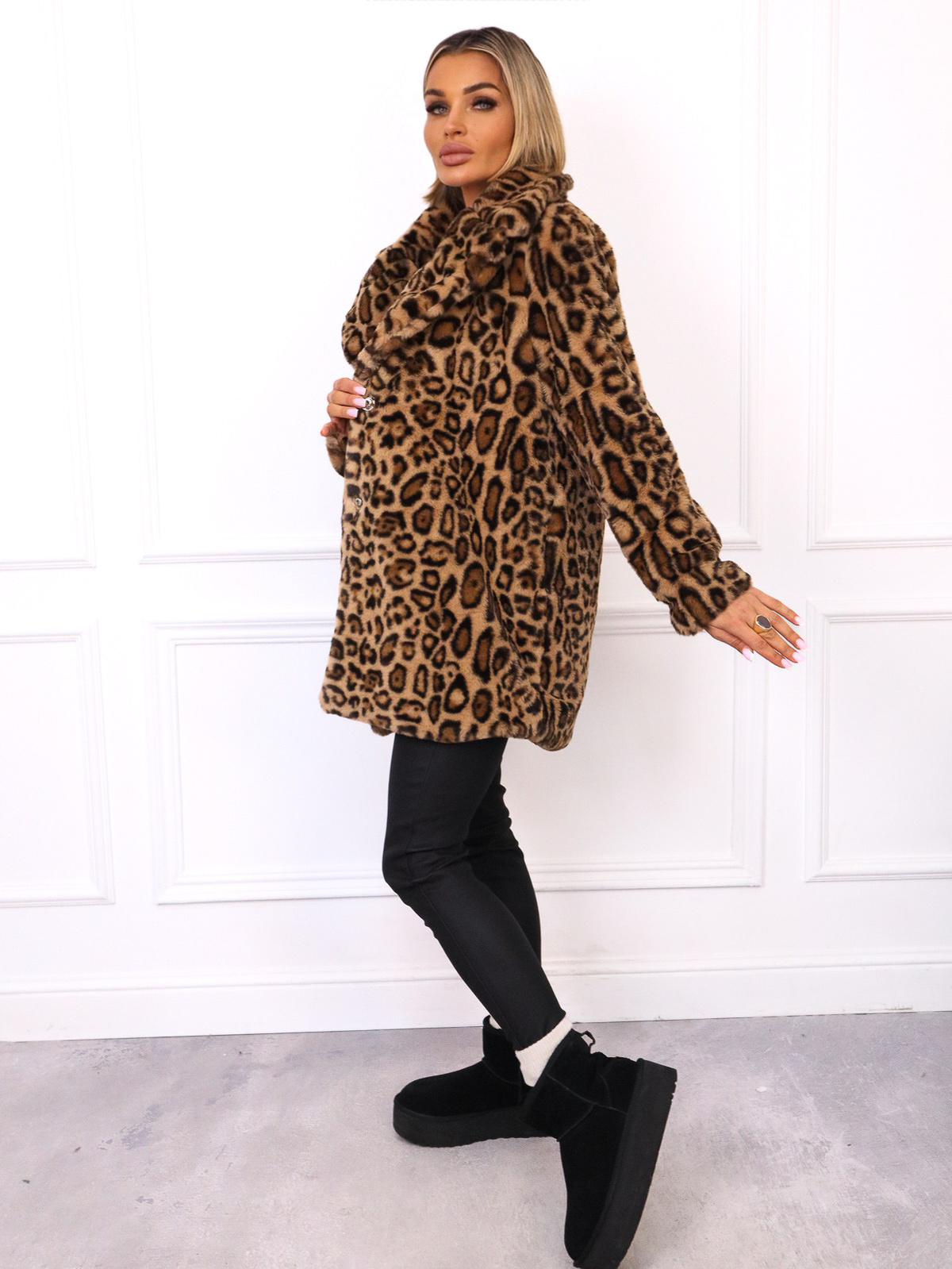 PŁASZCZ FUTRZANY Z KOŁNIERZEM- PANTERKA