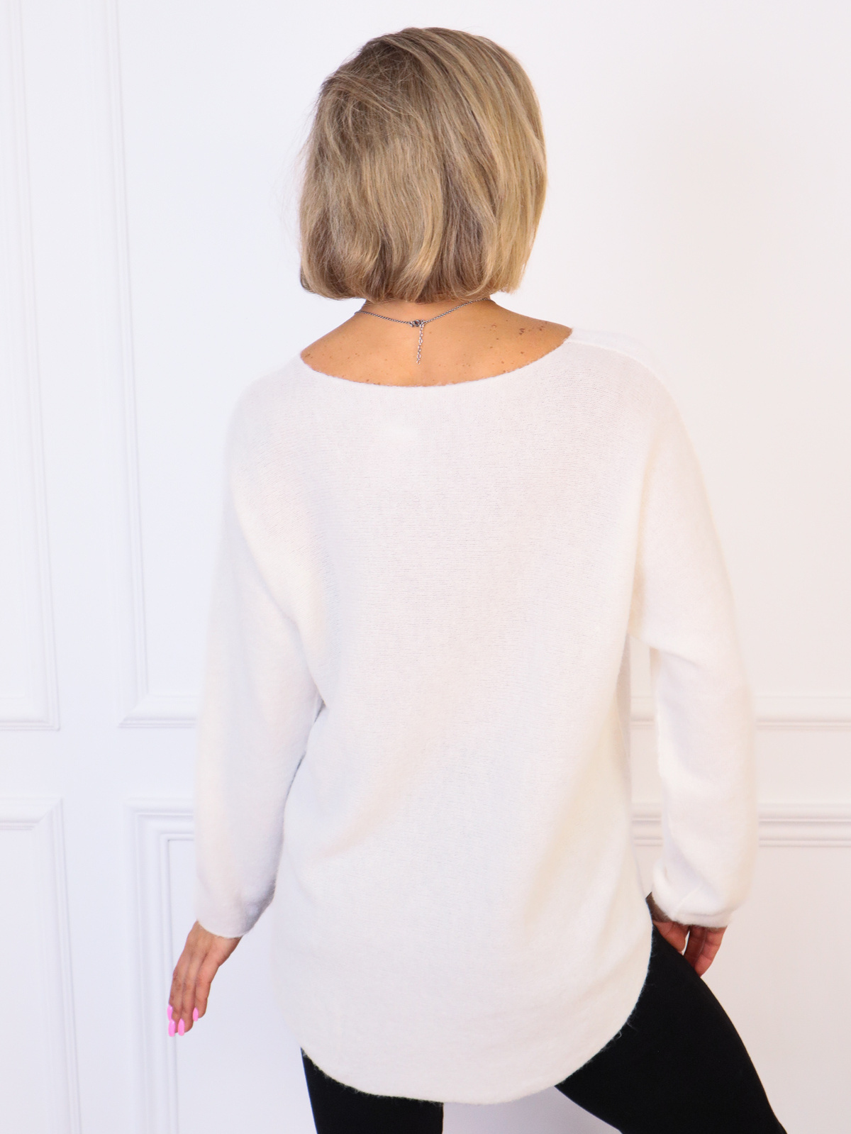 SWETER JEDNOLITY DZIANINOWY Z NASZYJNIKIEM- BIAŁY