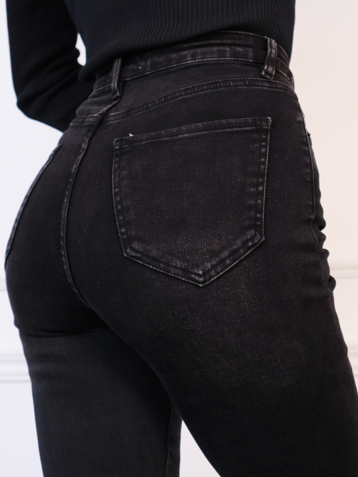 Spodnie jeansowe dzwony flare z wysokim stanem.