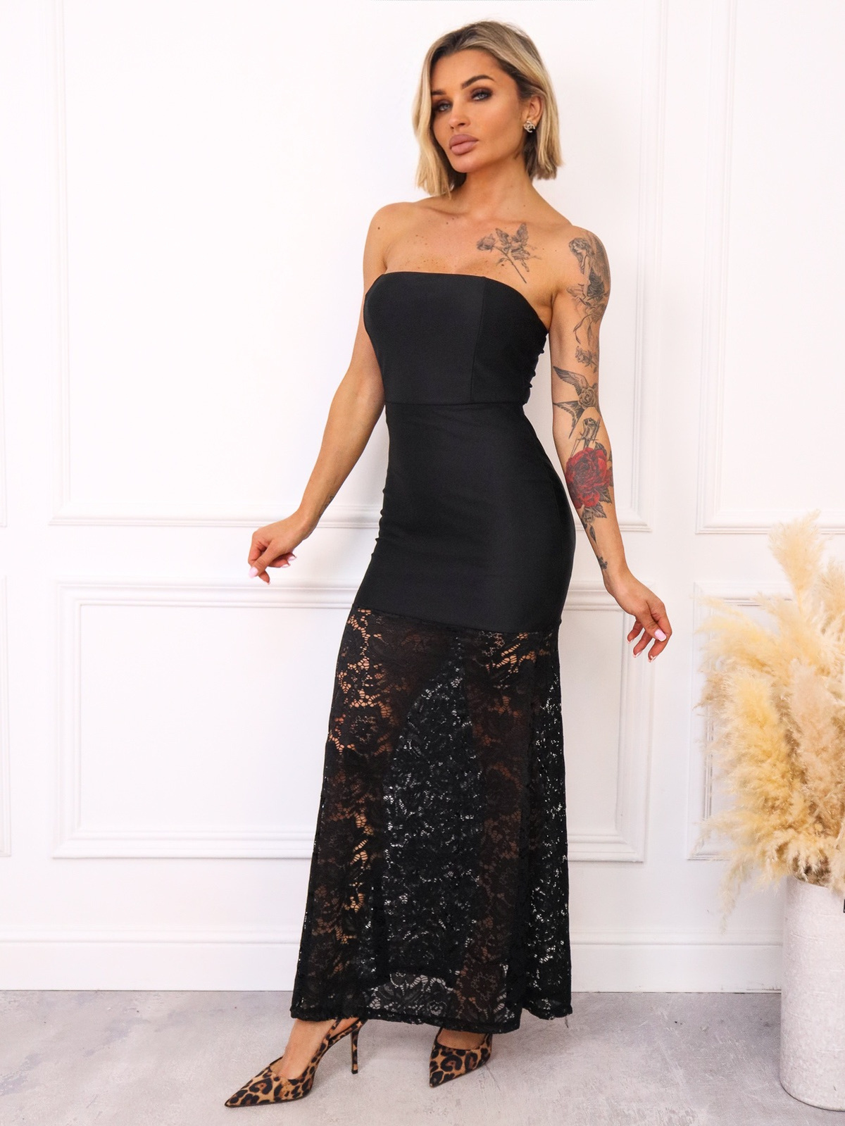 SUKIENKA BEZ RAMIĄCZEK Z KORONKĄ NA DOLE- CZARNA
