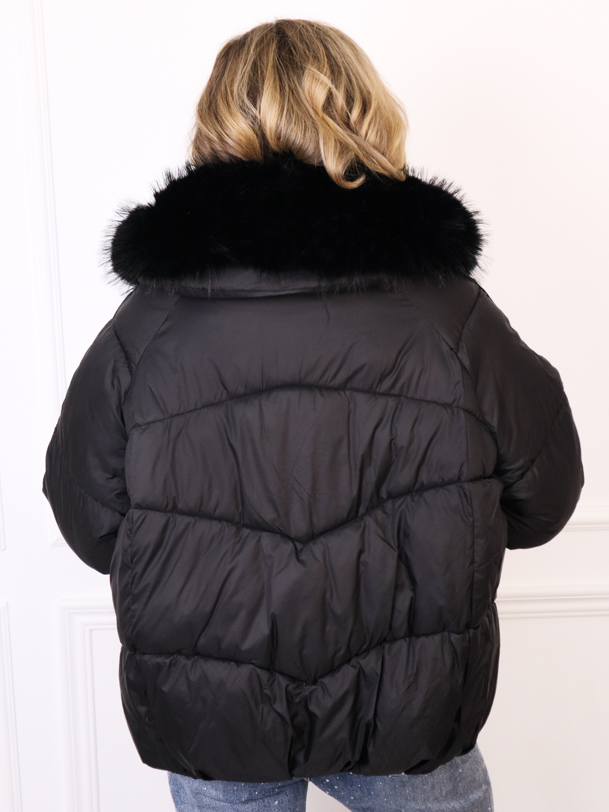 KURTKA Z FUTERKIEM ZAPINANA NA ZAMEK I ZATRZASKI- CZARNA
