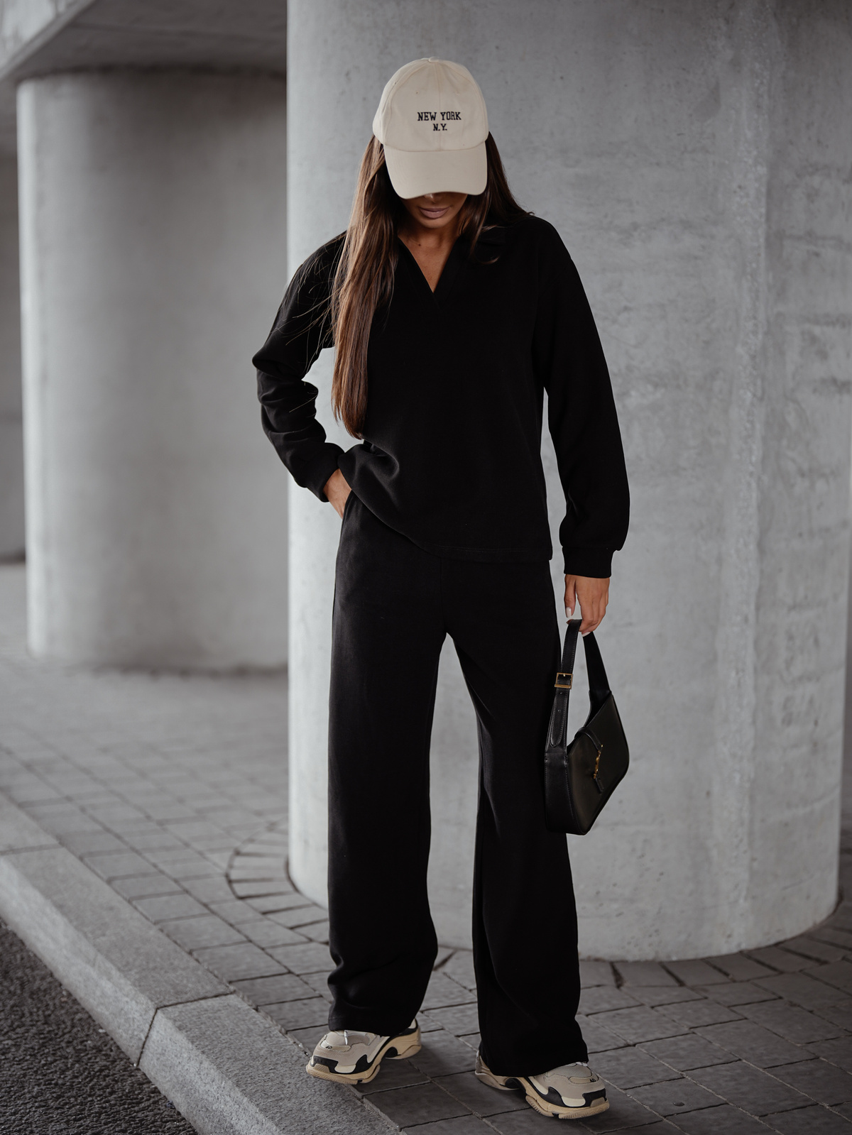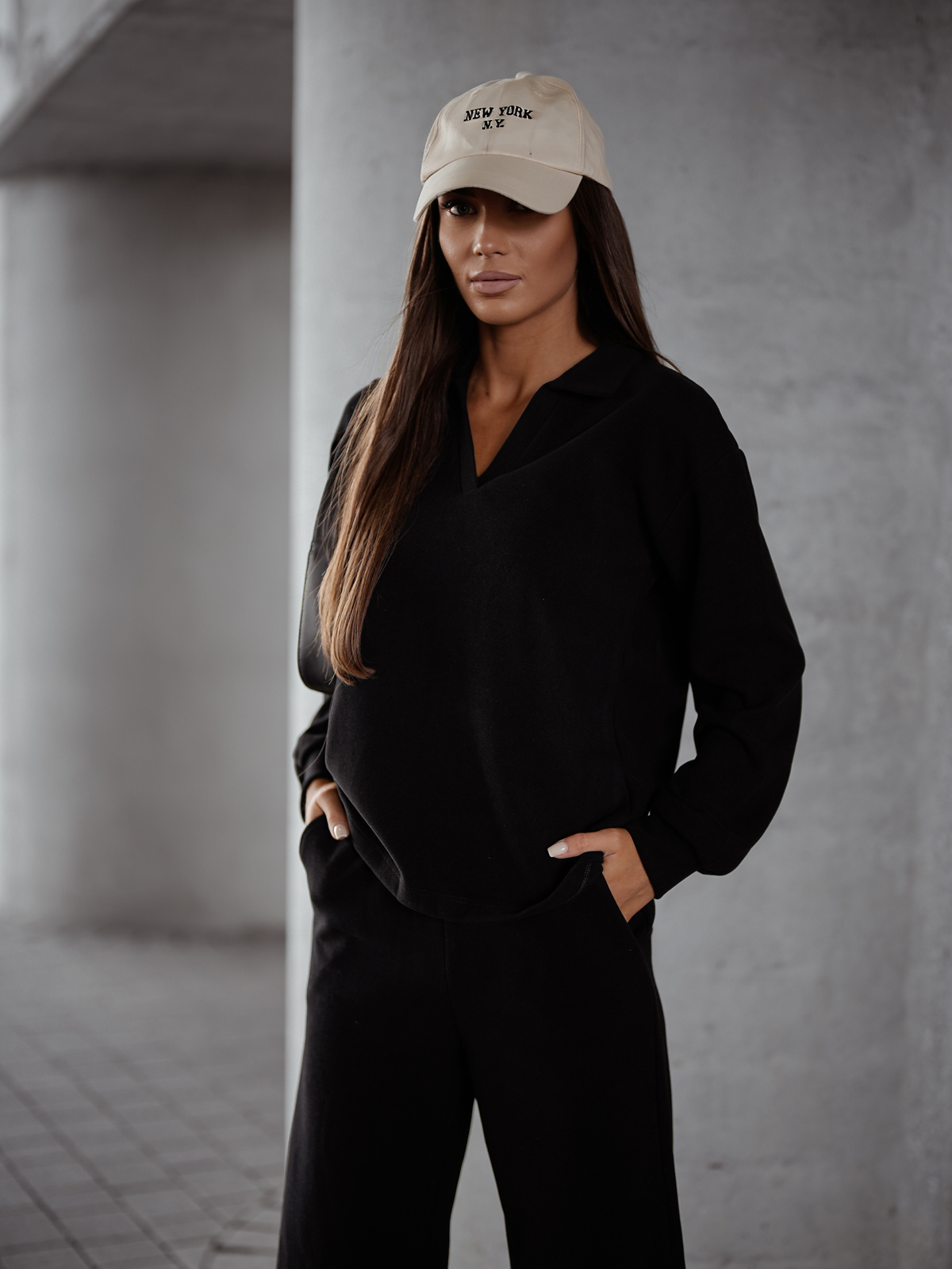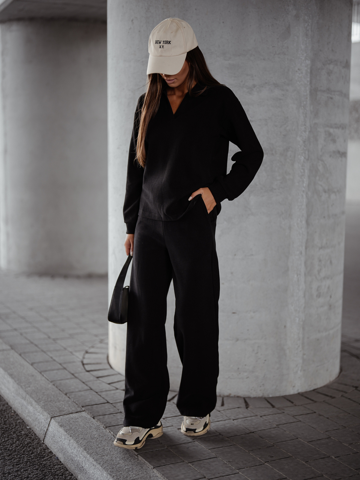 KOMPLET DZIANINOWY SWETERKOWA BLUZA+ SPODNIE- CZARNY