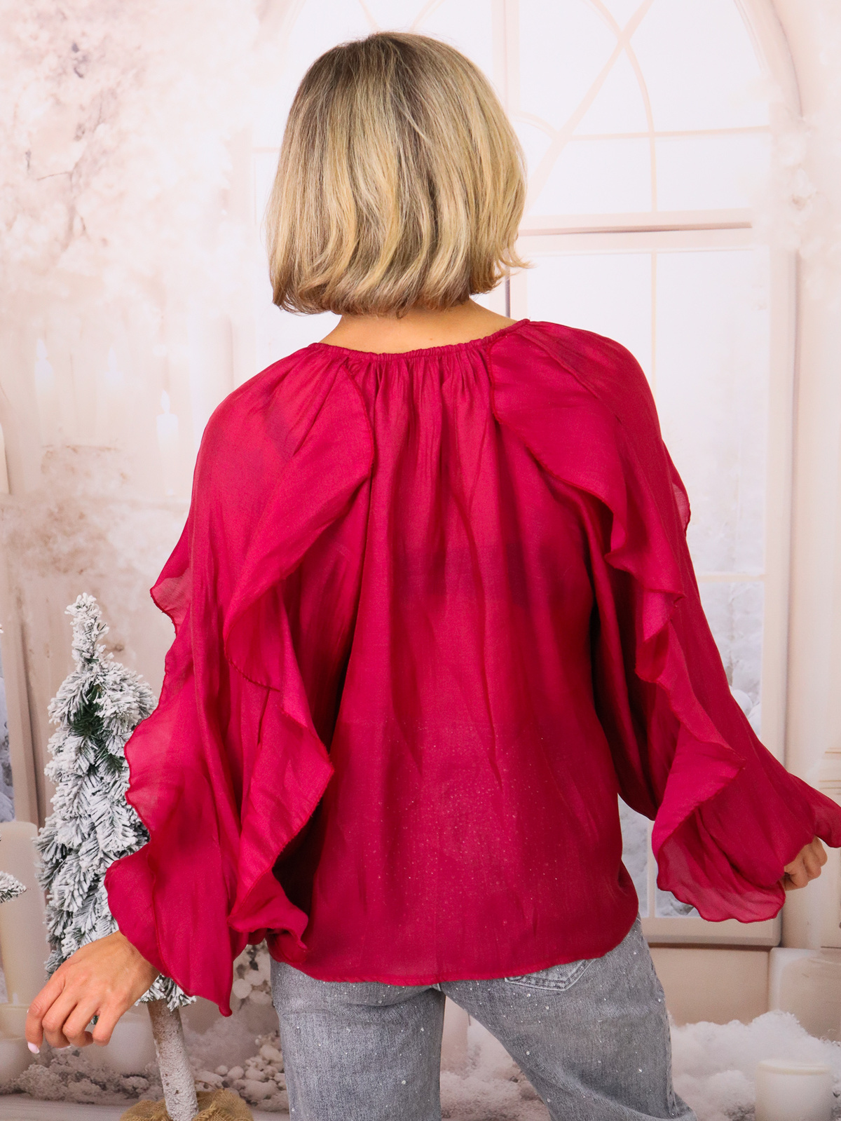 KOSZULA Z FALBANAMI ZAPINANA NA GUZIKI- BORDOWA