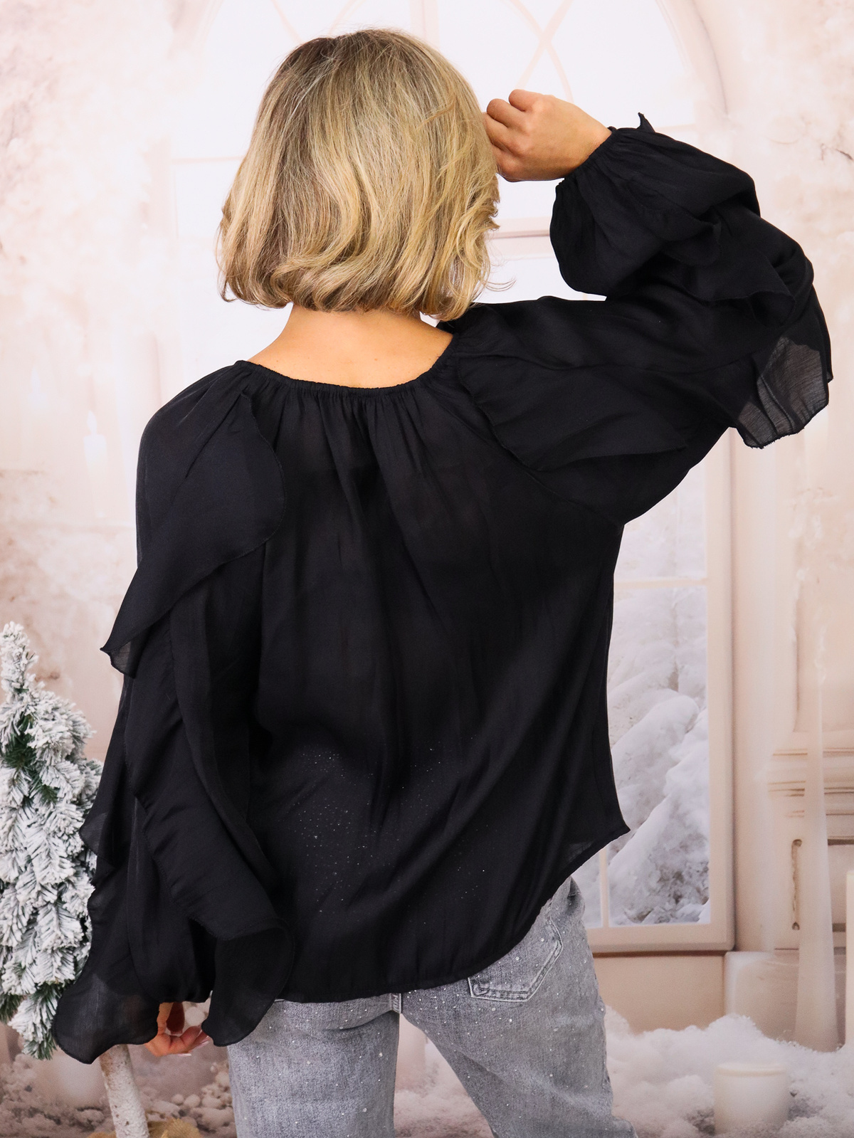 KOSZULA Z FALBANAMI ZAPINANA NA GUZIKI- CZARNA