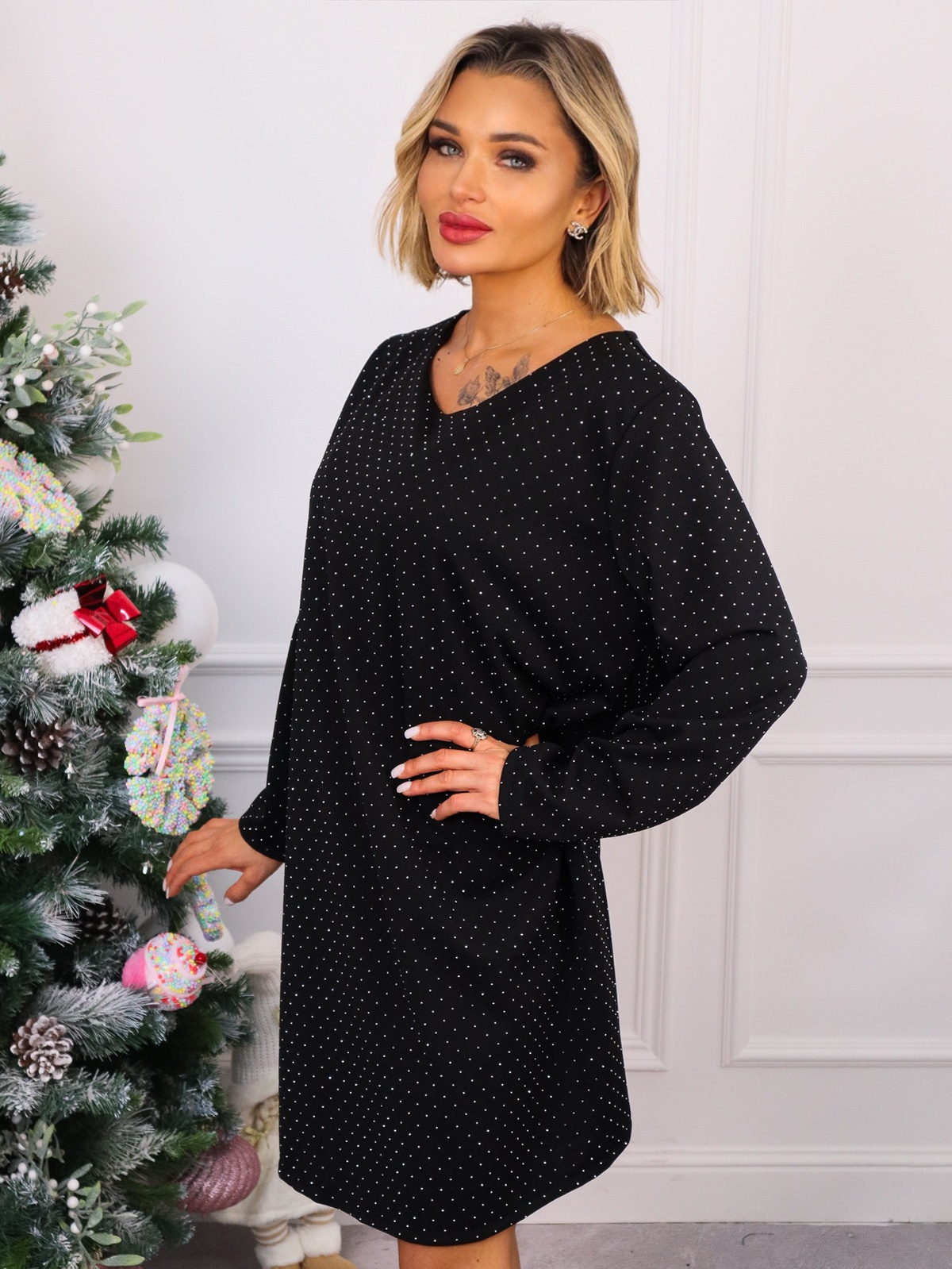 Sukienka zdobiona cyrkoniami.