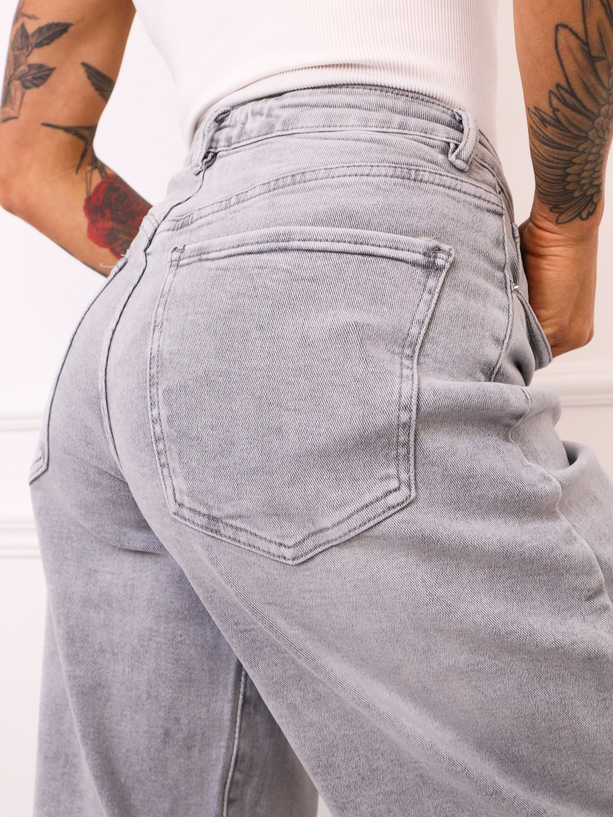 SPODNIE JEANSOWE BALLOON Z PRZETARCIAMI