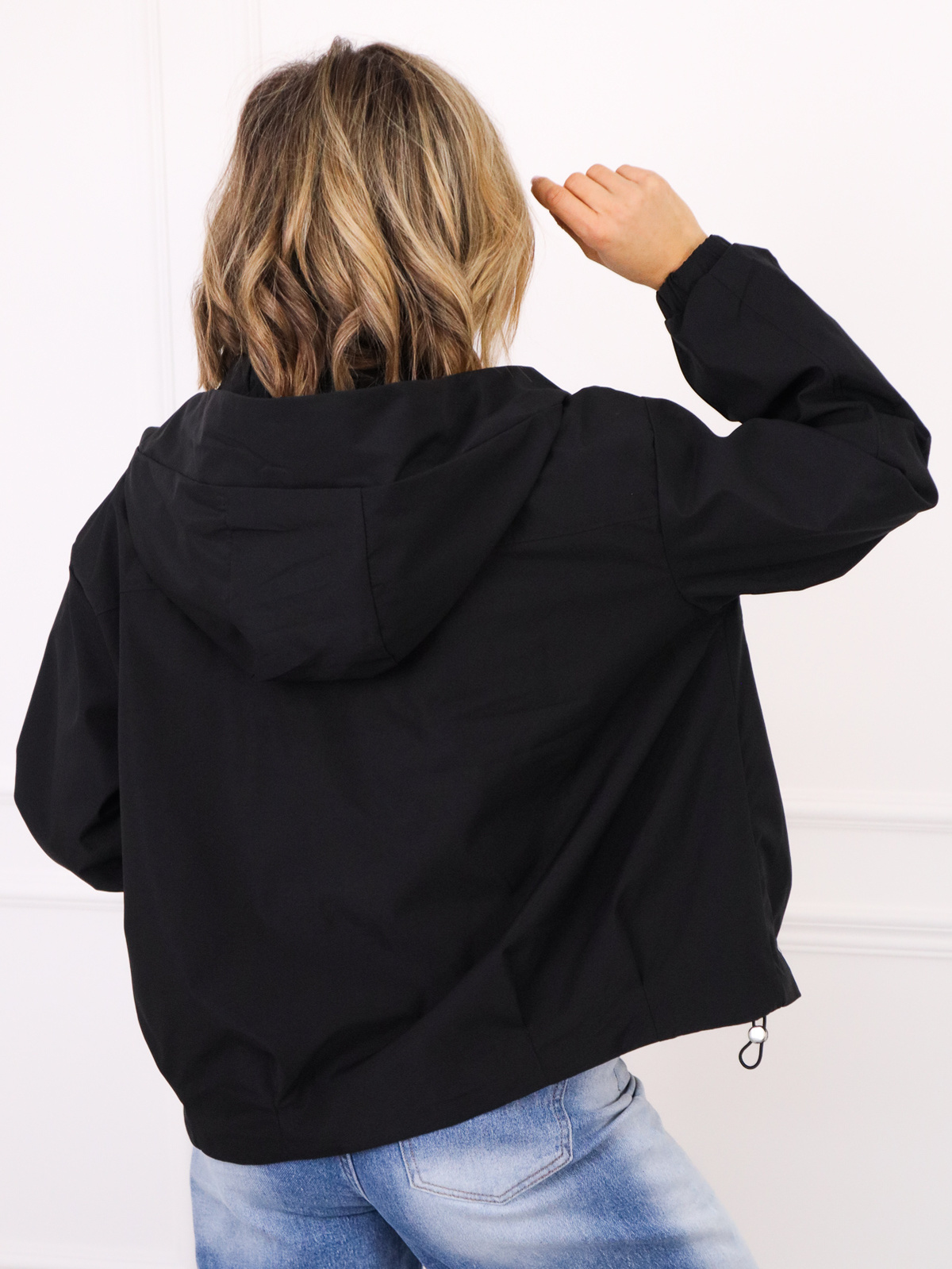 Kurtka przejściowa, wykonana z nowoczesnej, gładkiej i wytrzymałej tkaniny. Posiada kieszenie zapinane na zamek. Rękawy zakończone ściągaczem.