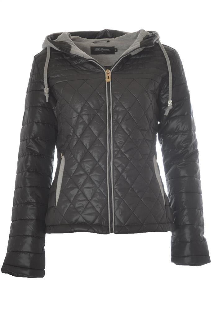 ZAPINANA NA ZAMEK, KAPTUR ZE ŚCIĄGACZEM, SZARE MATERIAŁOWE WSTAWKI