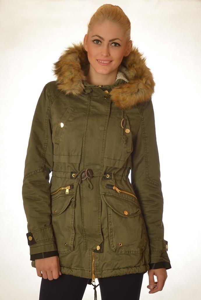 Zielna kurtka parka, w środku ocieplana futerkiem. Posiada kaptur obszyty sztucznym lisem. Kurtka zimowa zapinana na zamek oraz wiązana w pasie sznurkiem. Rękawy, stójka oraz kieszenie wykończone skórkowymi wstawkami.
