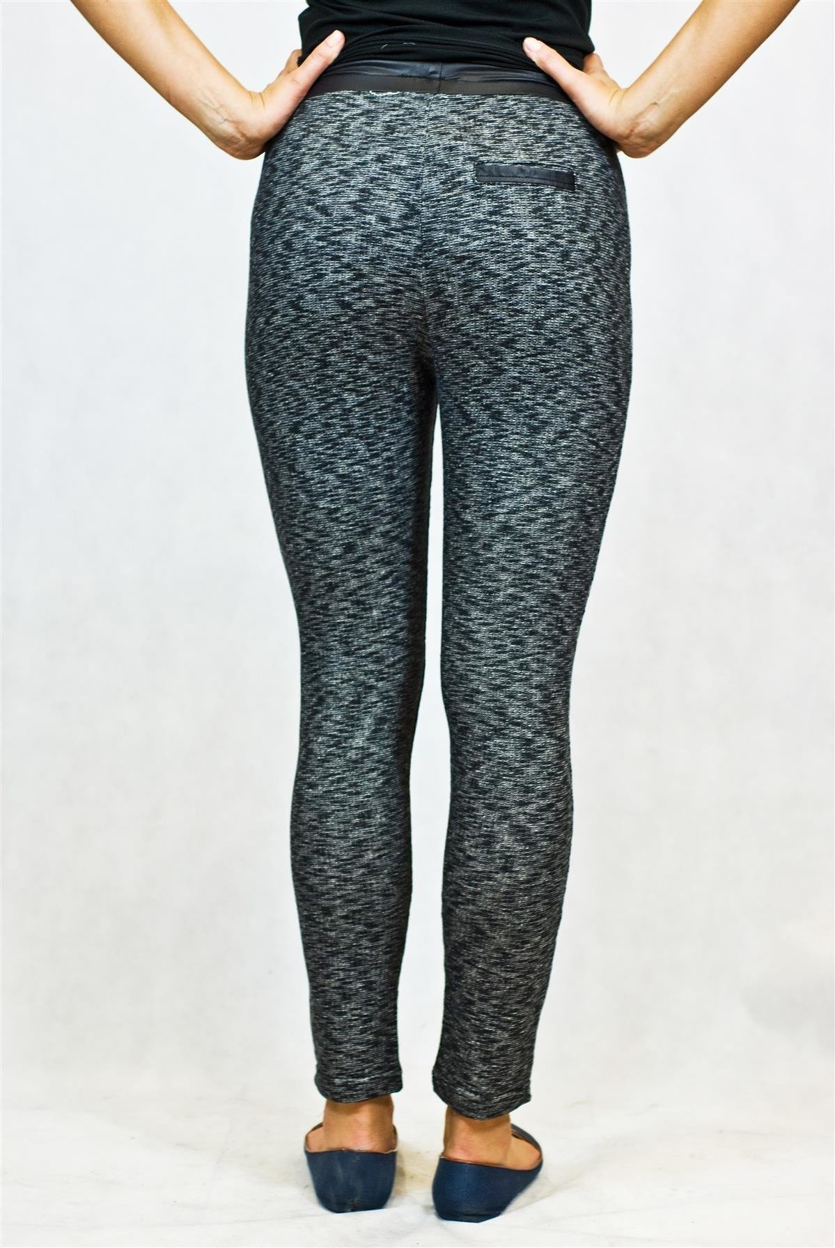 Modne, luźne spodnie z dresowego, melanżowego materiału. Spodnie ze zwężanymi nogawkami, w pasie wiązane na sznurek. Kieszenie obszyte skórką. Wygodne spodnie, idealne na co dzień, jak również świetnie sprawdzą się jako wygodny strój na siłownię czy fitness.
