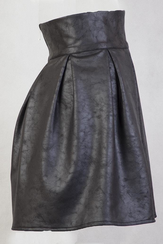Czarna, dekatyzowana spódnica skórka zapinana na zamek.