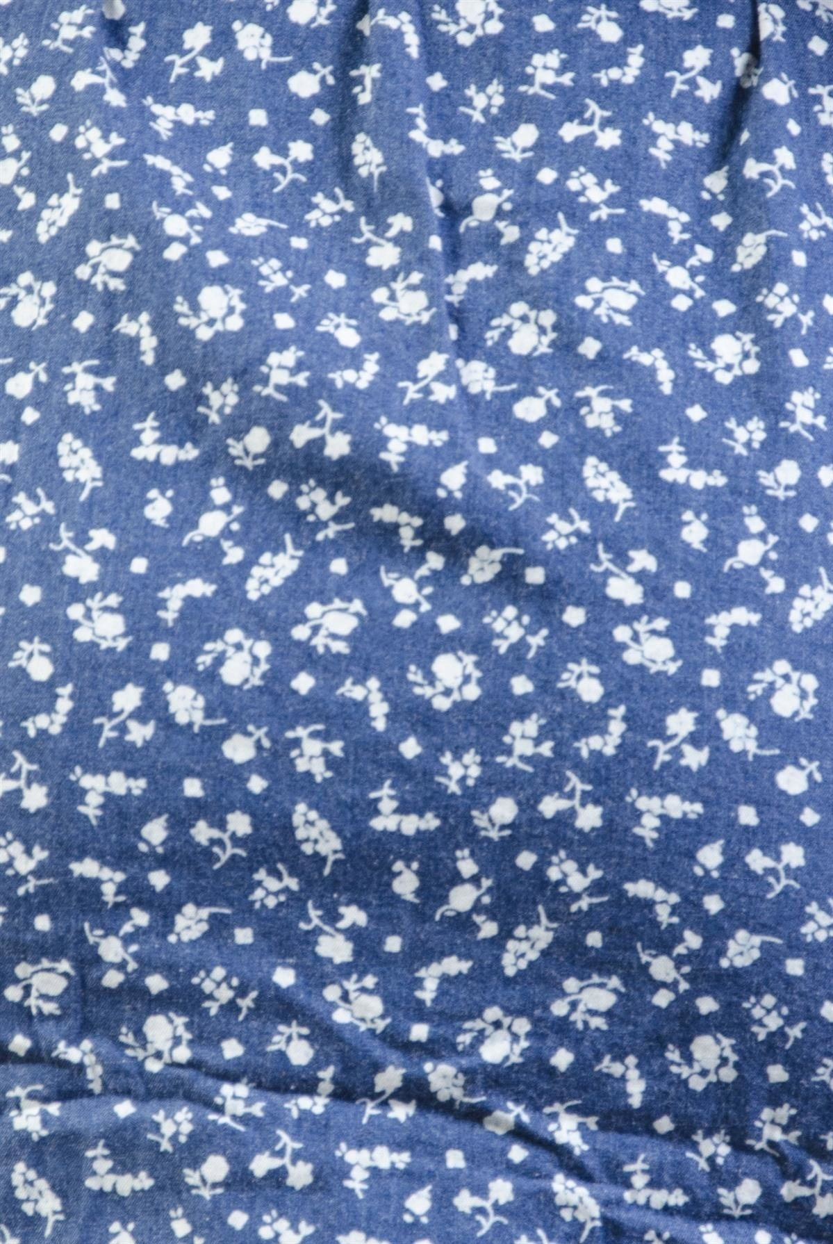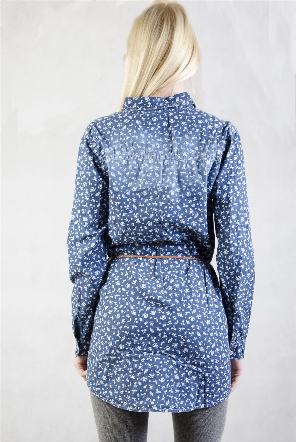 Koszula jeansowa we wzorki w kwiaty, zapinana na guziki oraz przeplatana paskiem.