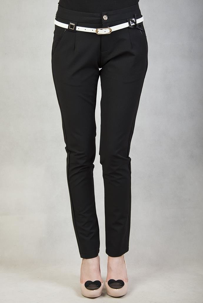 Czarne, eleganckie spodnie materiałowe z paskiem