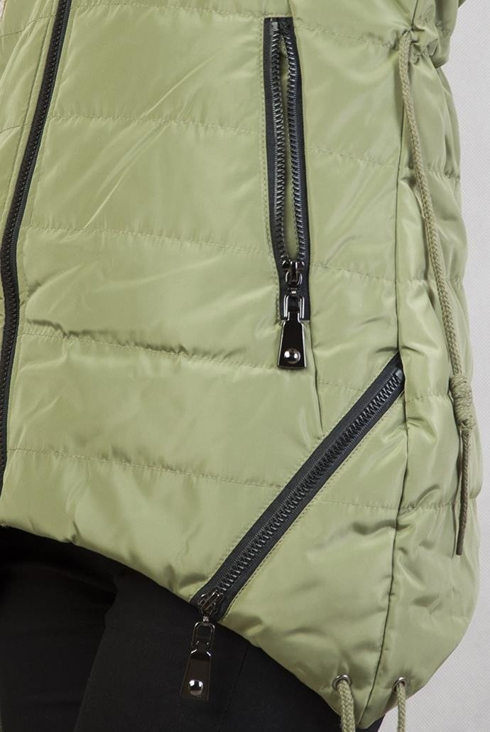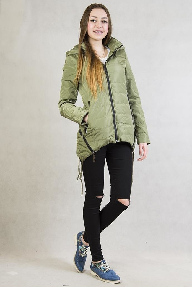 Asymetryczna zielona kurtka z kapturem ze ściągaczami