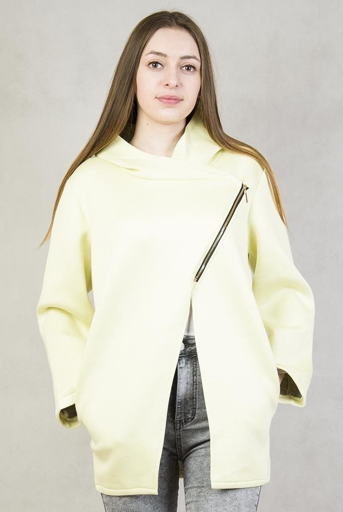 Żółta narzutka zapinana na zamek, z dwoma kieszeniami.
