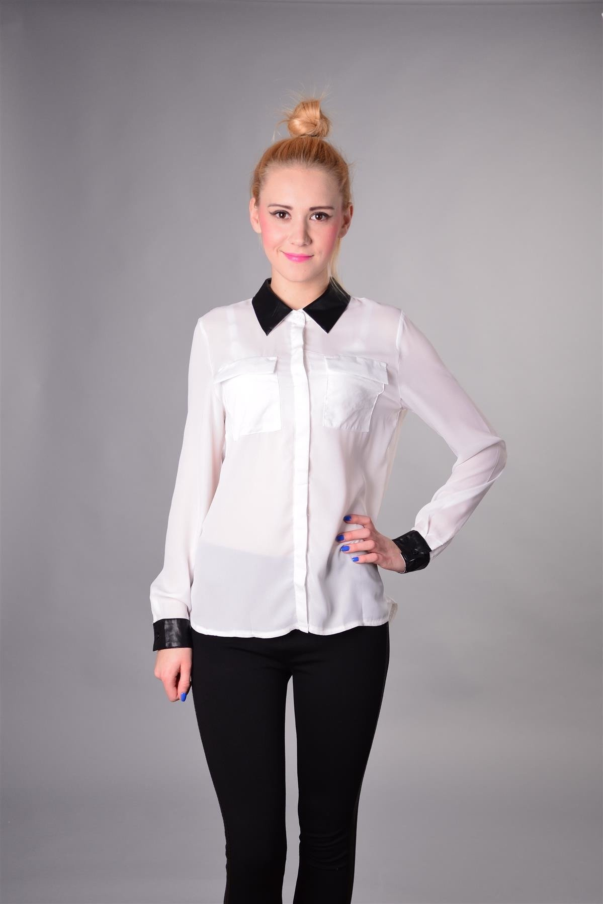 Elegancka koszula z cienkiego, lekko prześwitującego materiału. Klasyczna, ze skórkowym kołnierzykiem, oraz mankietami, które nadają jej uroku, idealna na wiele okazji.