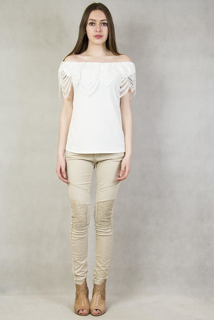Bluzka biała z koronką na ramionach, z hiszpańskim dekoltem
