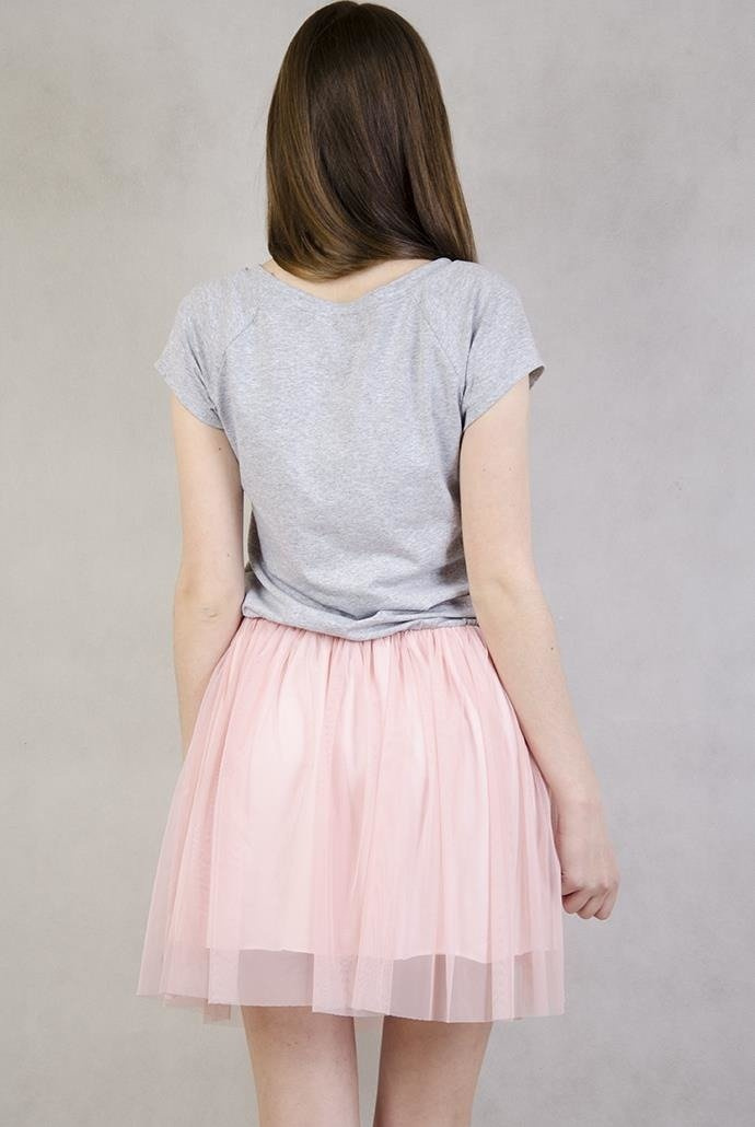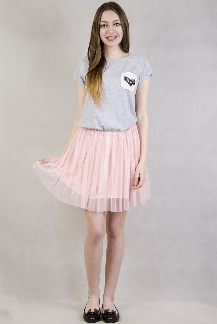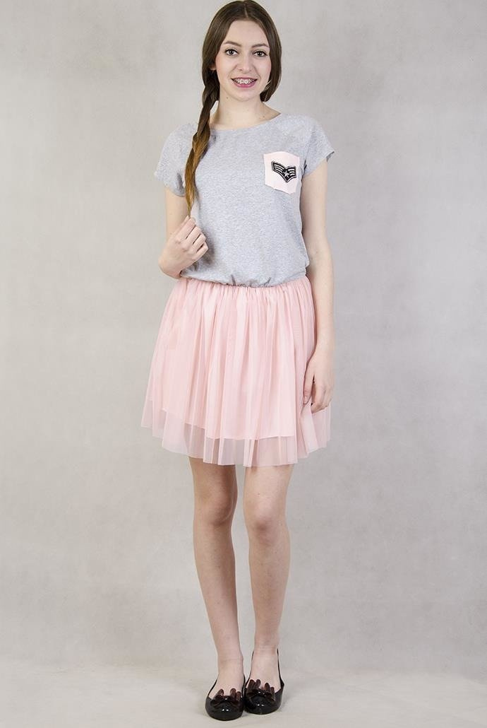 Sukienka z szarą górą i różowym tiulowym dołem