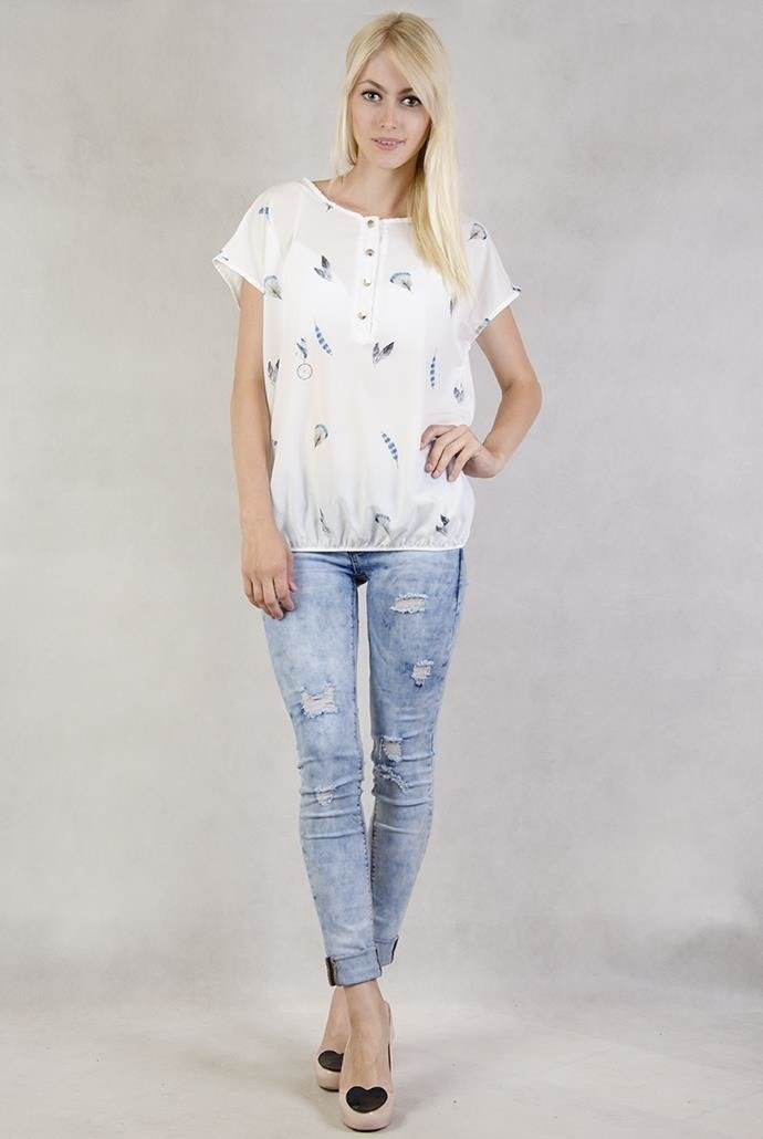 Biała bluzka z piórkami