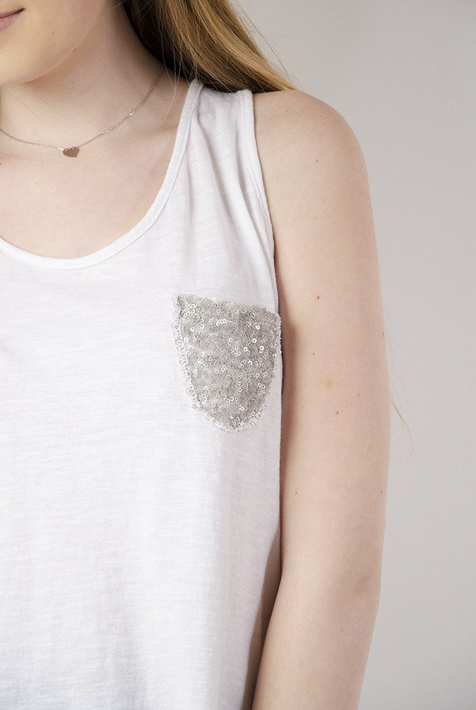 Biała bluzka na ramiączka ozdobiona cekinami