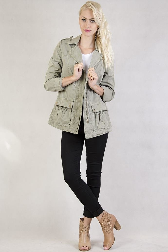 Kurtka khaki z kieszeniami i ozdobnymi zamkami