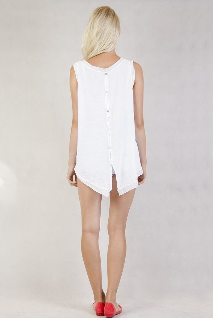 Biała bluzka z asymetrycznymi bokami ozdobiona srebrną nitką
