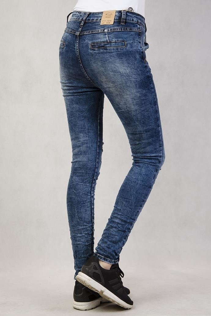 Spodnie jeansowe BAGGY z przetarciami i guzikami na skos