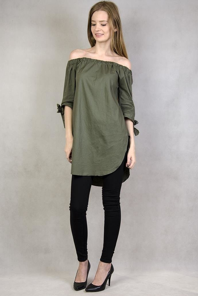 Zielona tunika z hiszpańskim dekoltem