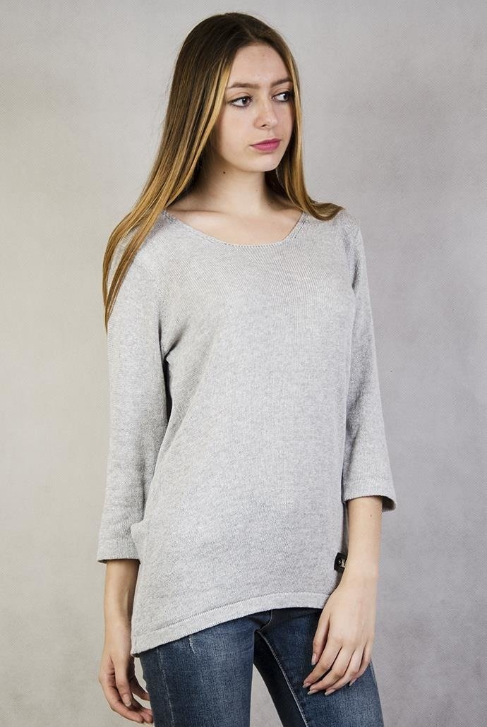 Szary sweterek z wstążką na plecach, rękaw 7/8