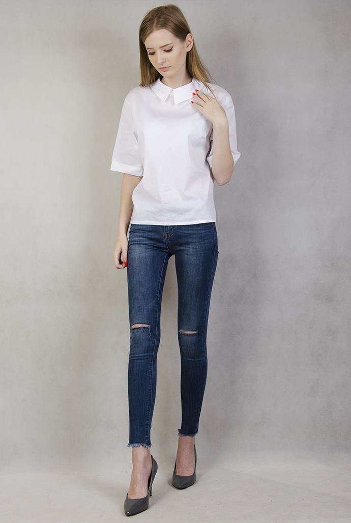 Biała koszula z wiązaniem na dole i guzikami z tyłu
