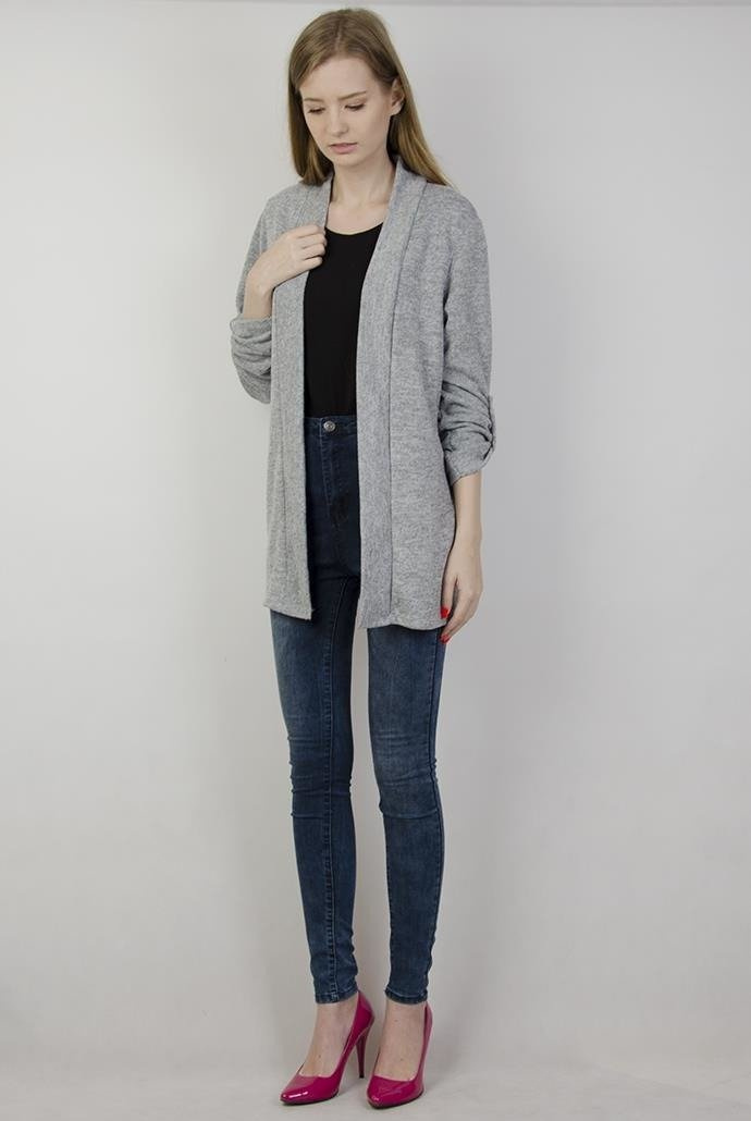 Jasnoszara narzuta z podwijanym rękawem na złoty guzik