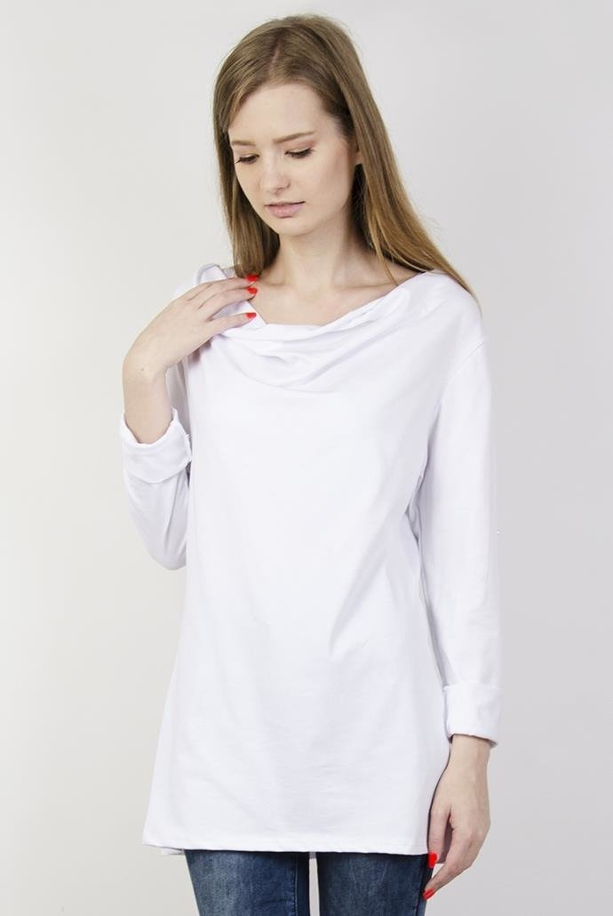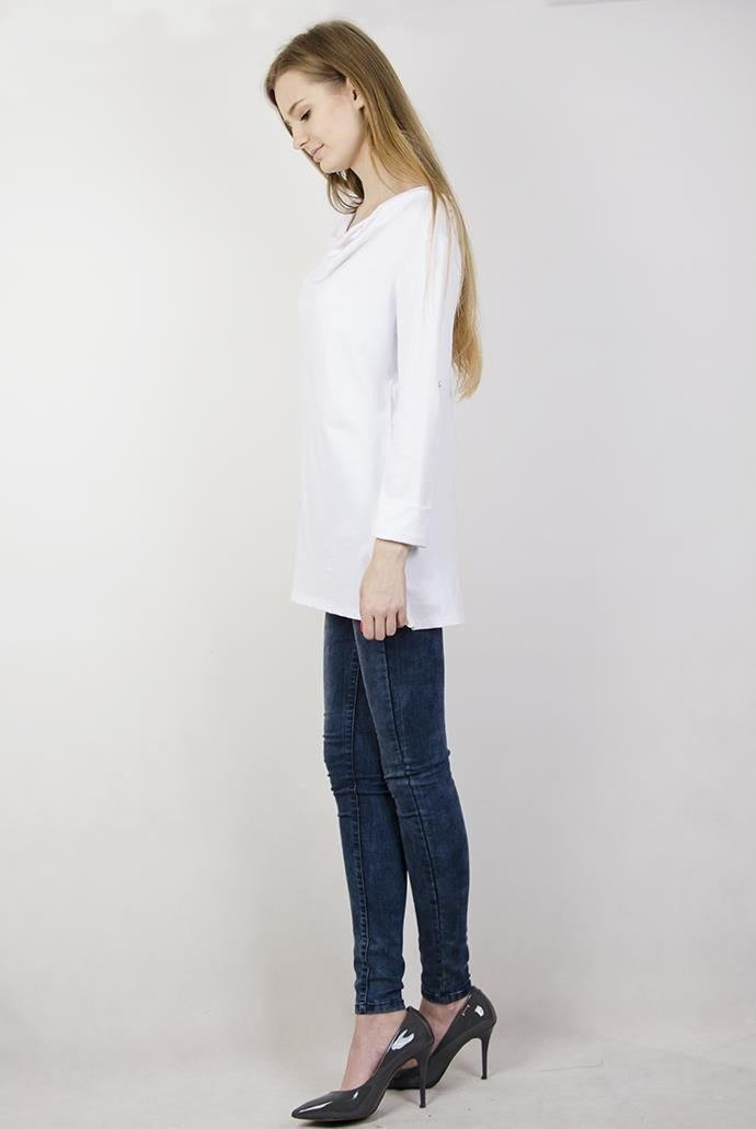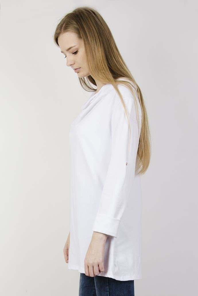 Biała bluzka z dekoltem i podwiniętymi rękawami