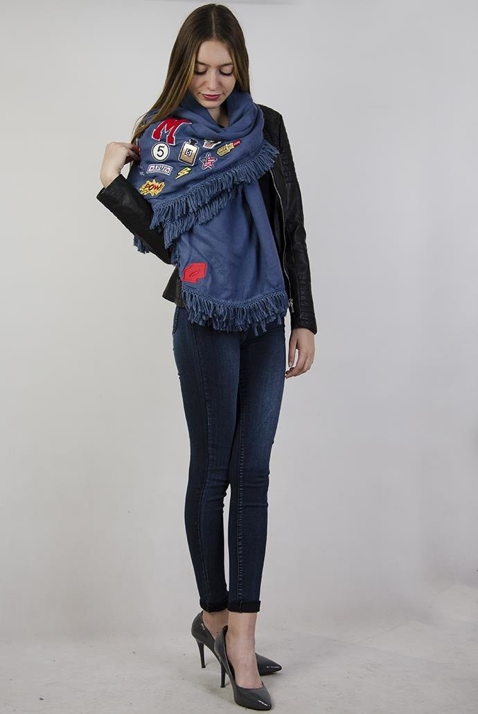 Niebieski szal z naszywkami