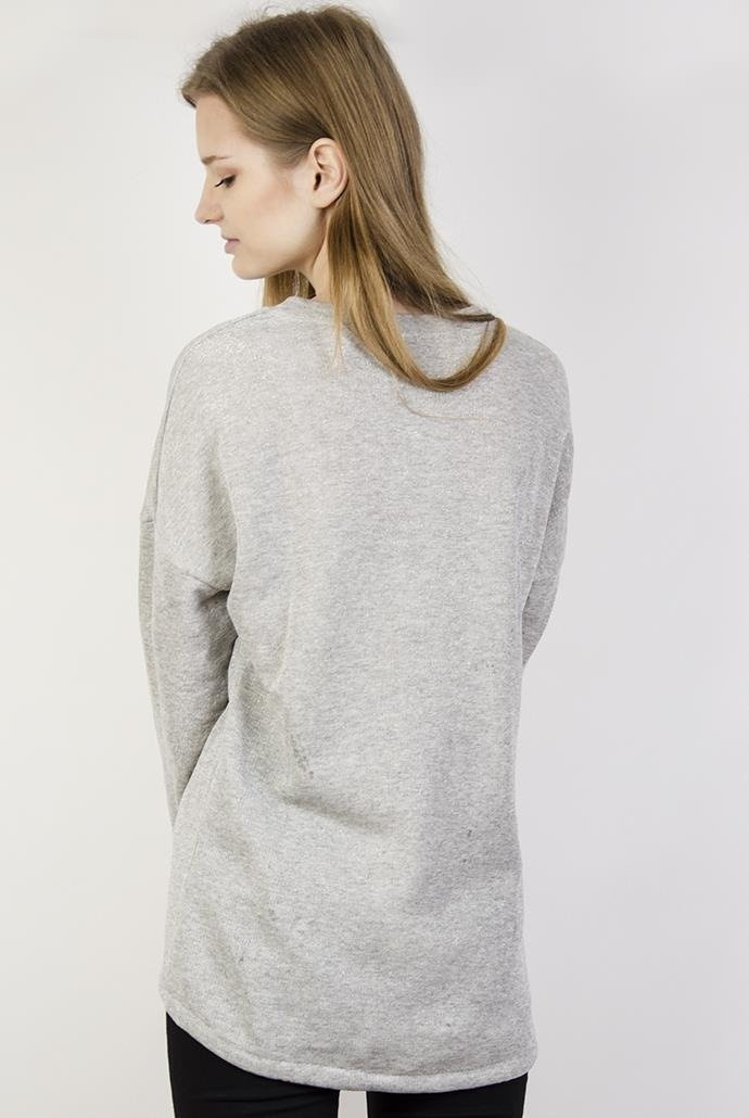 Jasnoszara bluzka przeplatana srebrną nicią z sercem z cekinów