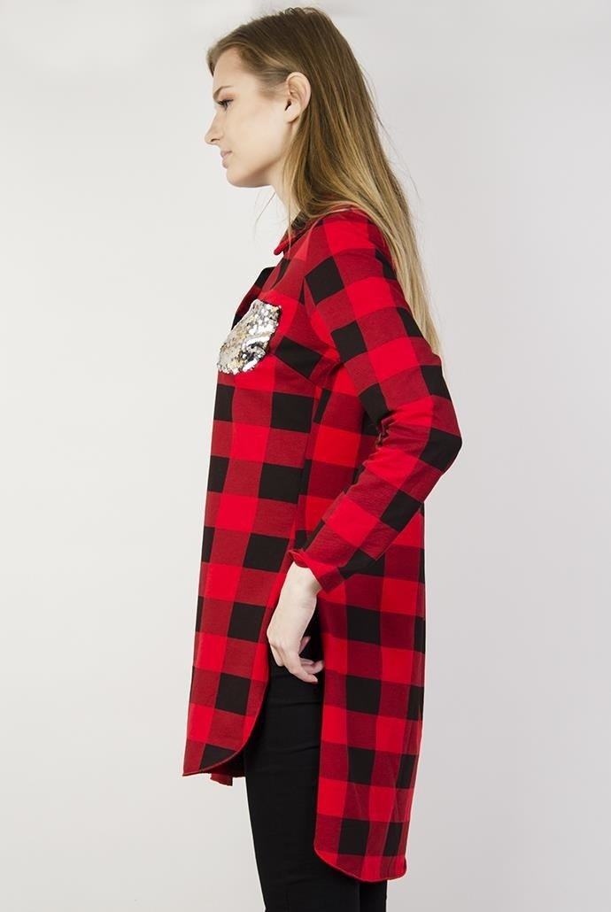 Asymetryczna koszula w kratę z złotą cekinową kieszonką